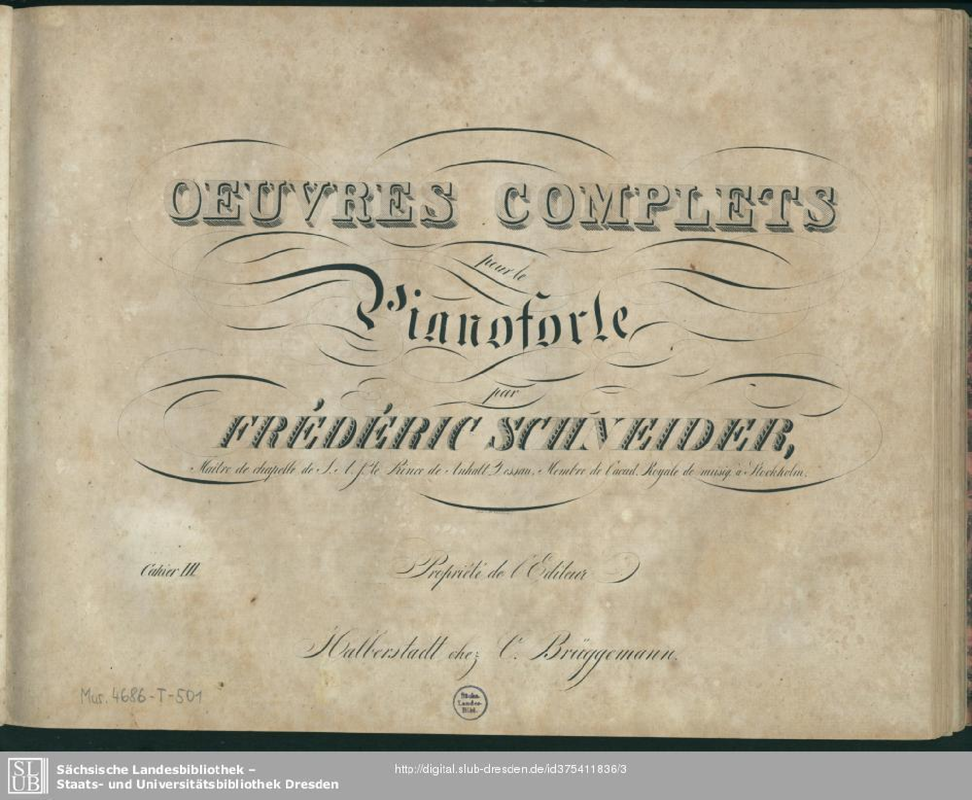 Oeuvres complets pour le Pianoforte par Frederic Schneider (inaccurate title, see below)