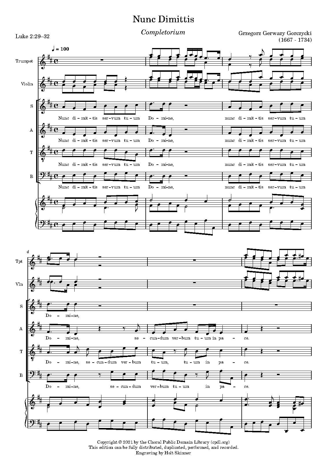| Instrumentation | soprano, alto, tenor, bass, mixed chorus (SATB), 2 trumpets, 2 violins |
