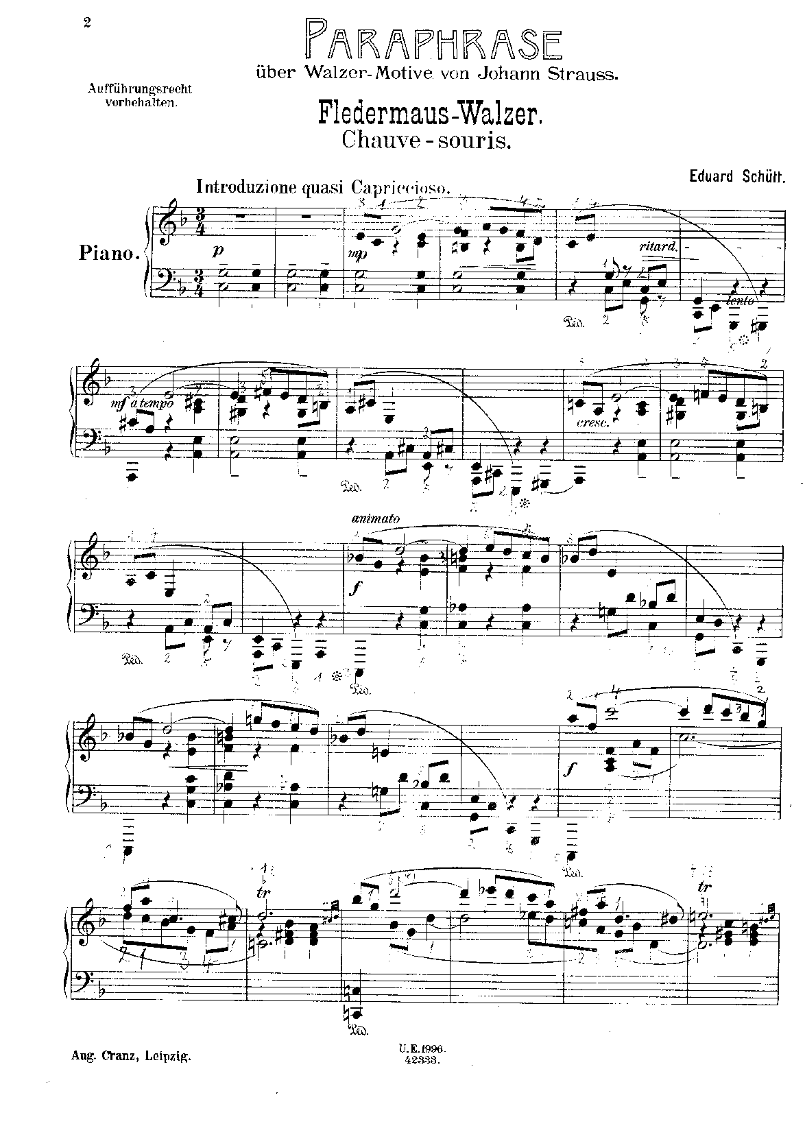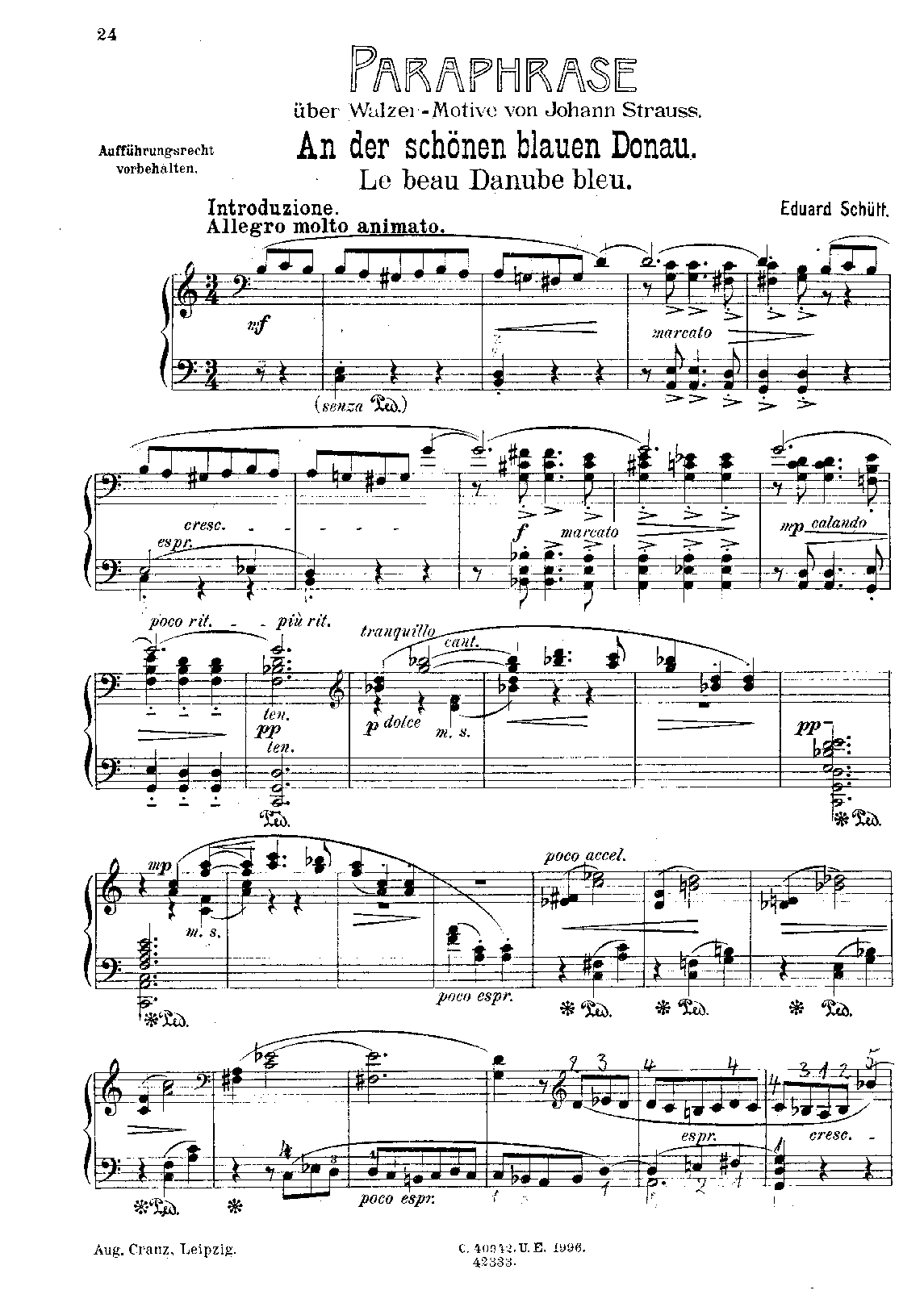Leipzig: August Cranz, n.d.(ca.1910). Plate 42333. Co-issue: Vienna: Universal Edition, n.d.(ca.1910). Plate U.E. 1996.