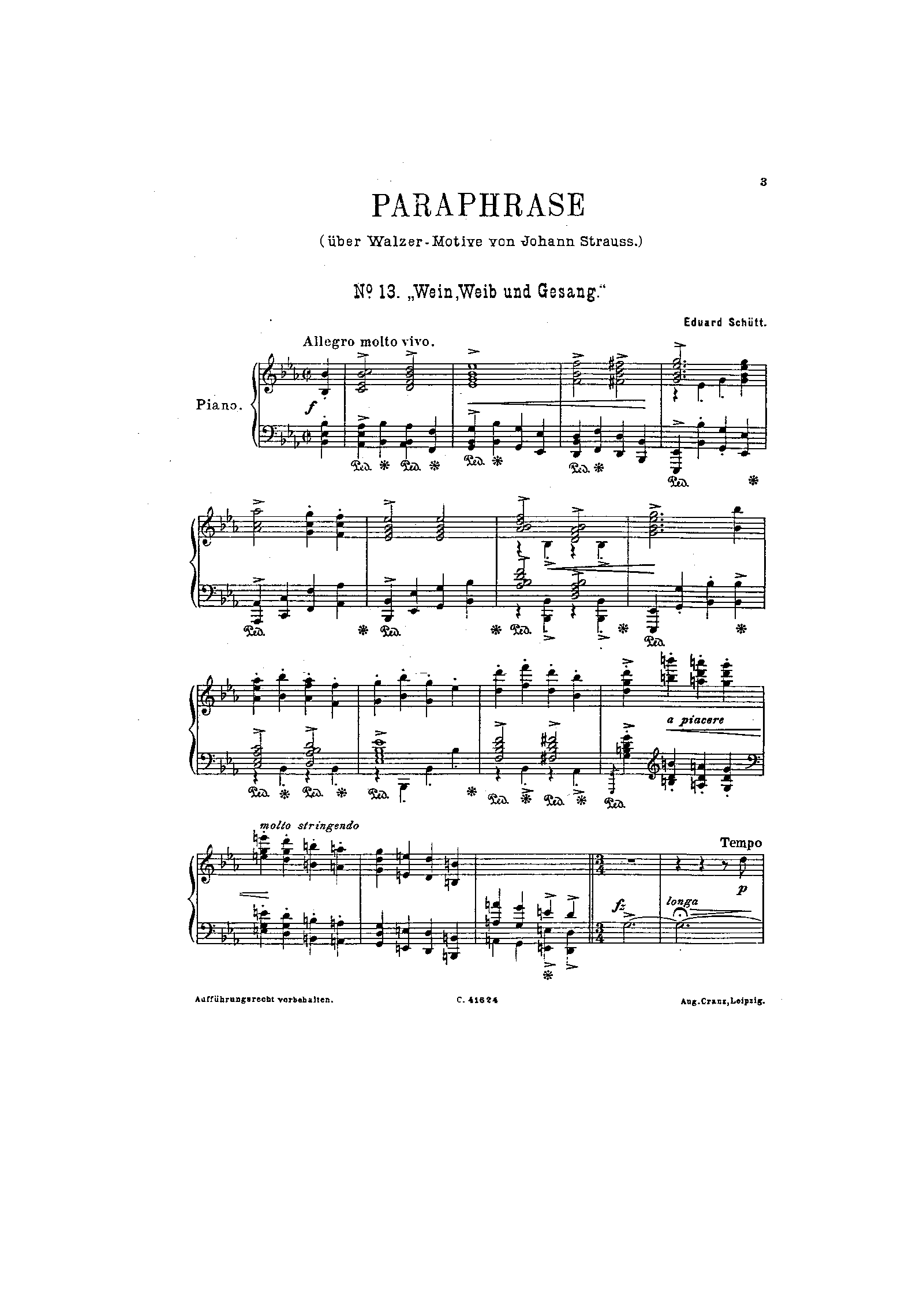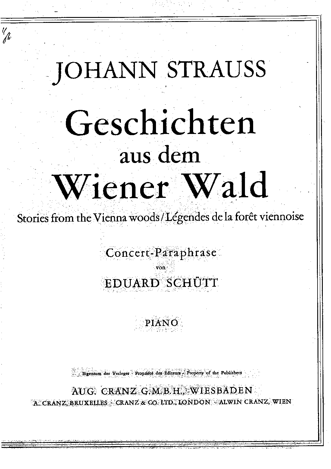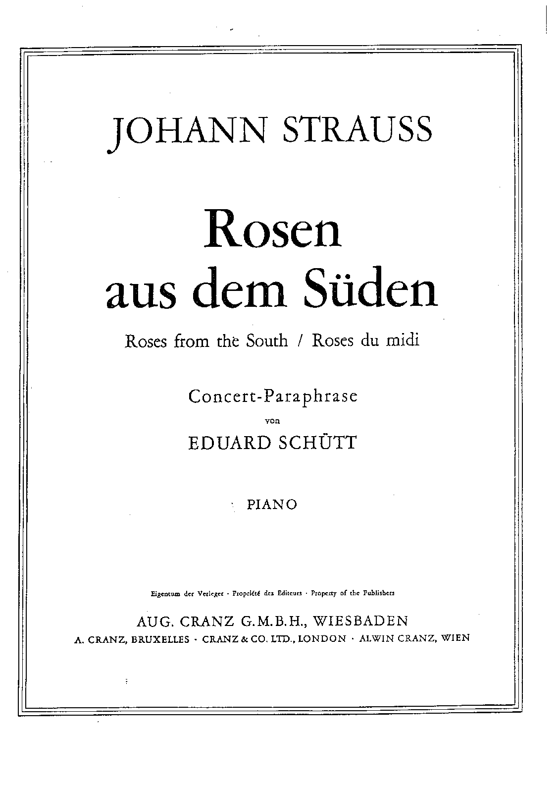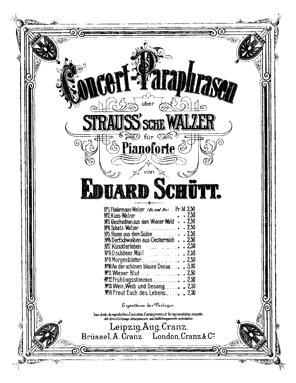 Leipzig: August Cranz, n.d.(ca.1910). Plate 42334. Co-issue: Vienna: Universal Edition, n.d.(ca.1910). Plate U.E. 1997.