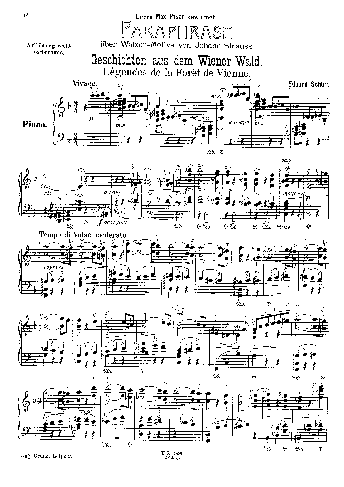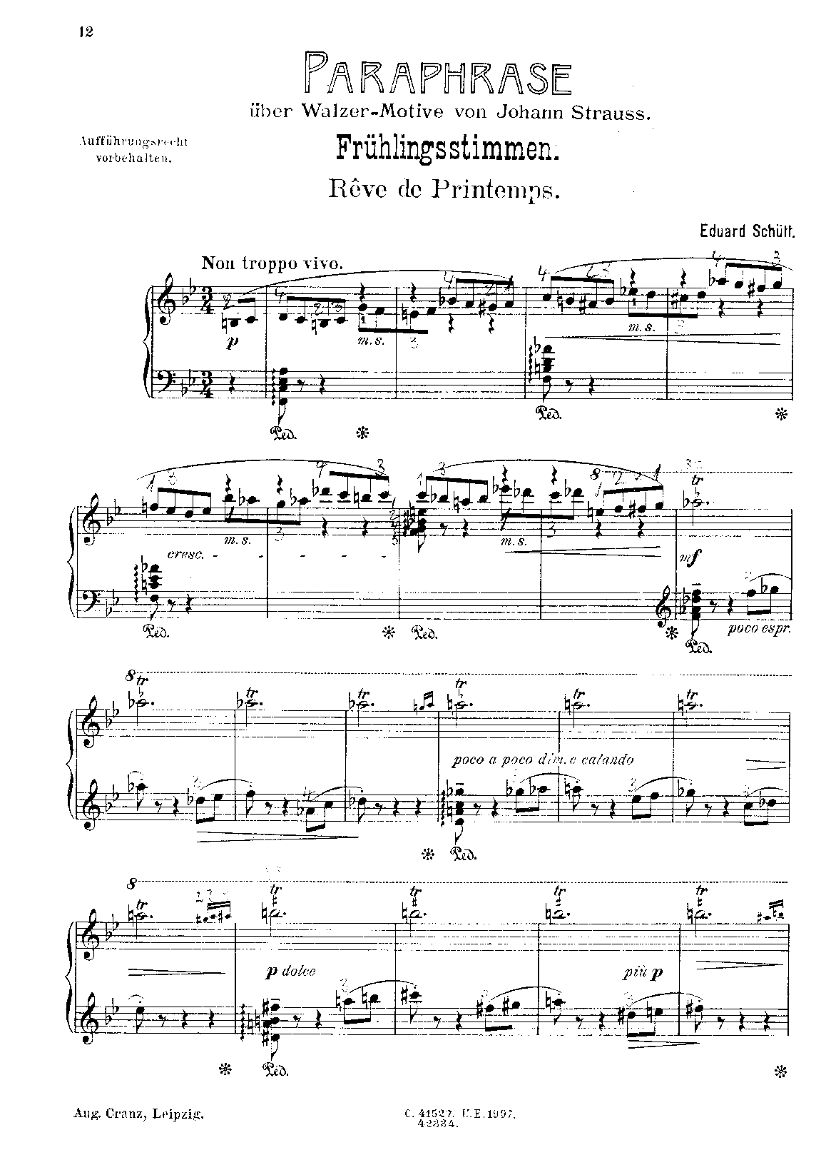 From a collection issued jointly by Cranz and U.E. Plate number for the original Cranz ed. of this piece is C. 40942