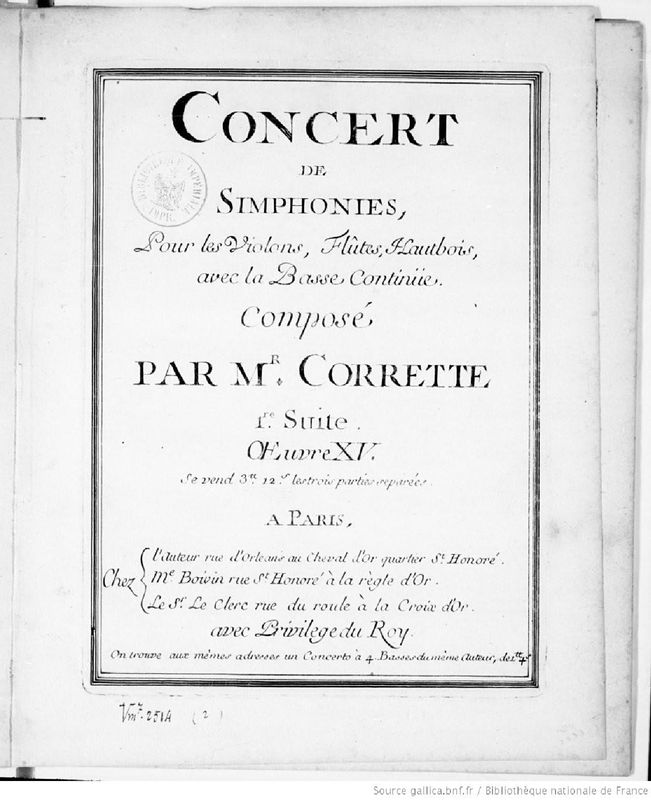 Concert de Simphonies, pour les violons, flutes, hautbois, avec la basse continue ... 1re Suite Oeuvre XV