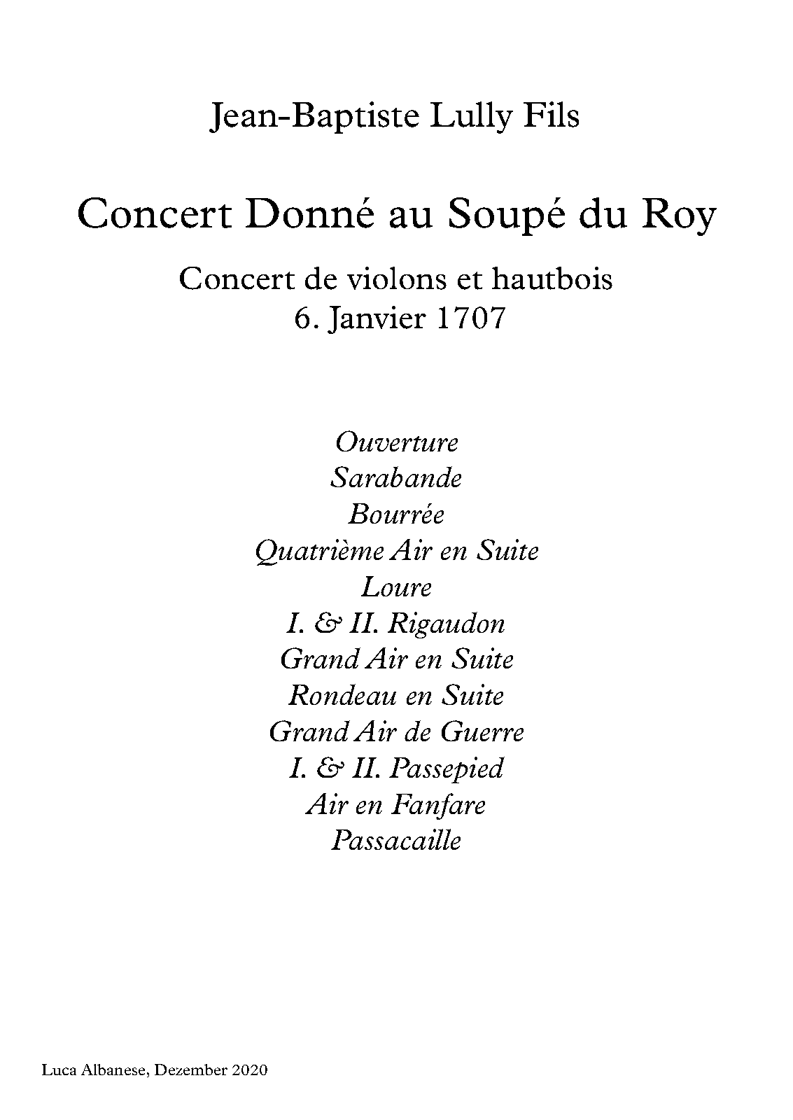 | Work Title | Concert de violons et de hautbois donné pour le souper du Roy le seize janvier 1707 |