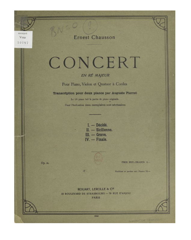 - Eugène Ysaÿe (violin), Auguste Pierret (piano), Quatuor Crickboom