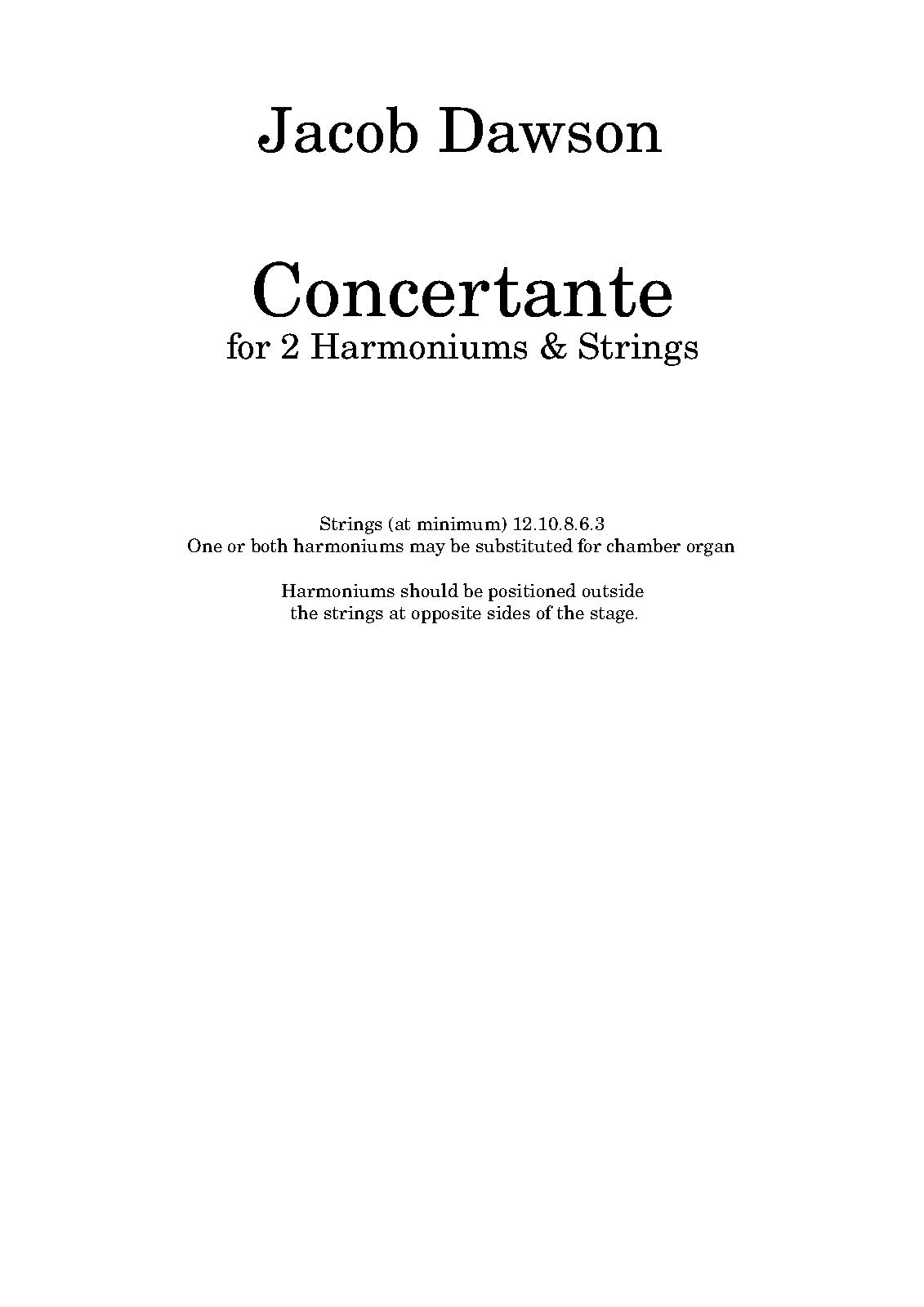 | Work Title | Concertante for 2 Harmoniums and Strings |