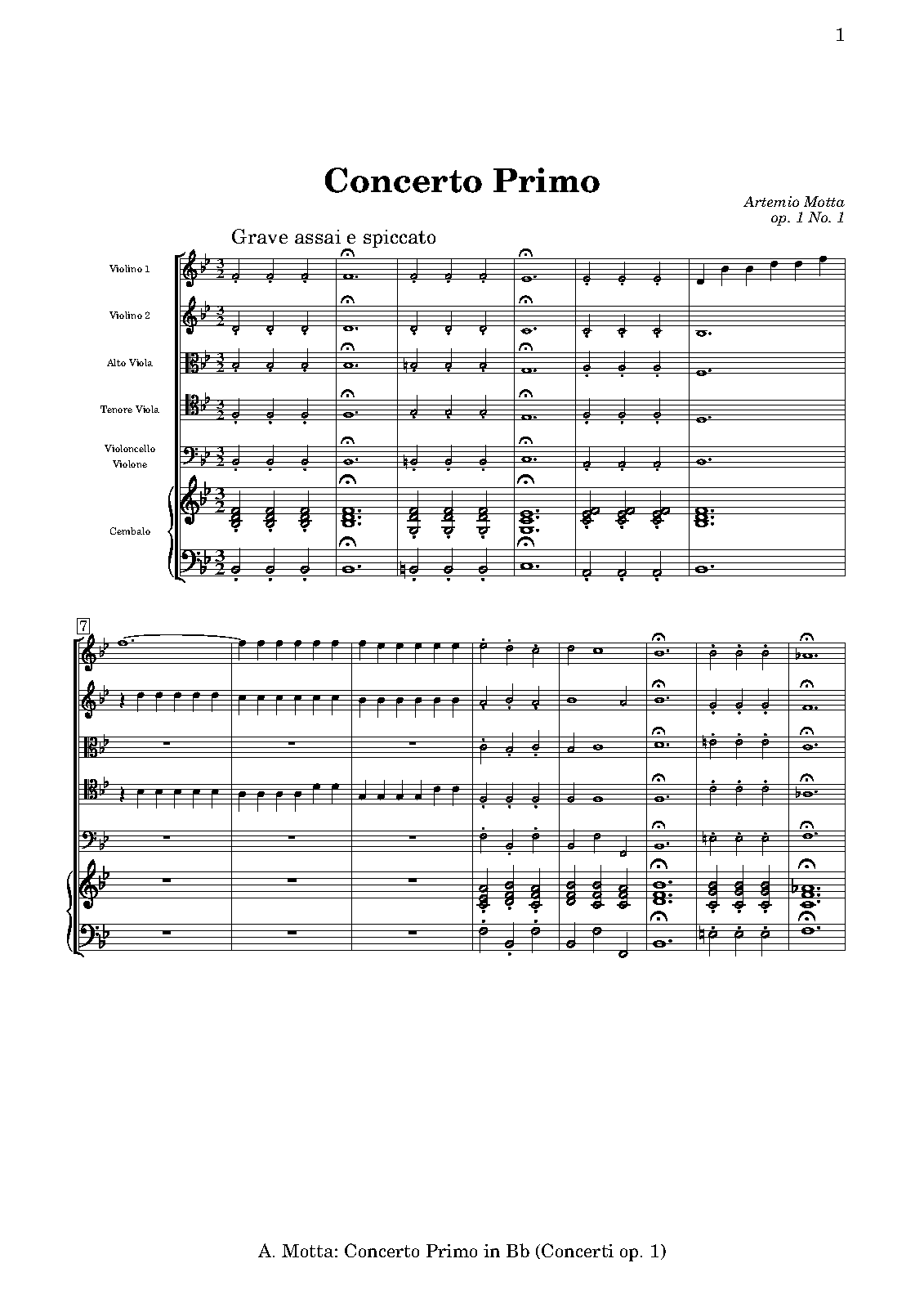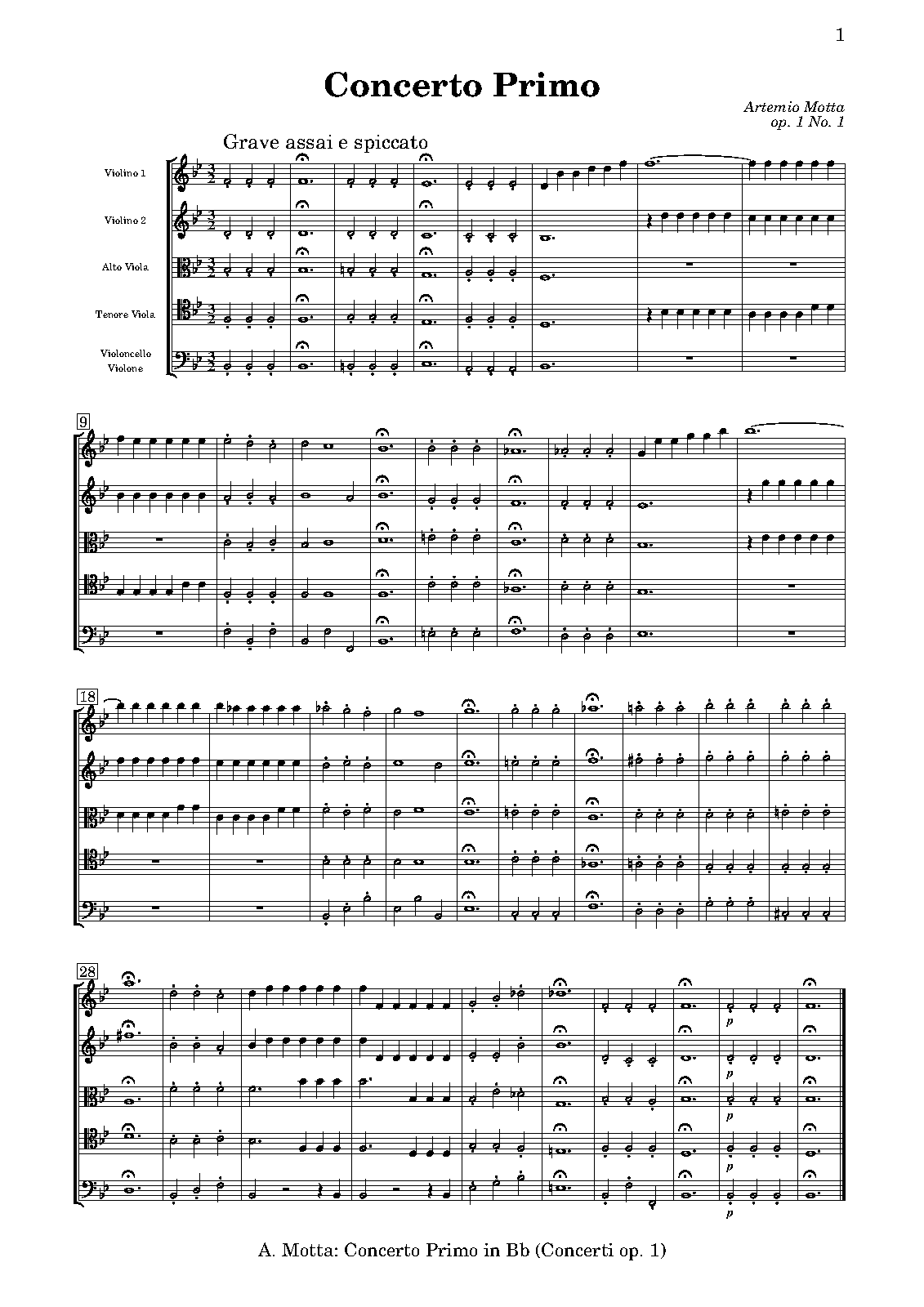 5 more: Violino Secondo (Violins II) • Alto Viola (Violas I) • Tenore Viola (Violas II) • Violone o Arcileuto (Cellos / Basses / Archlute) • Cembalo (Harpsichord)