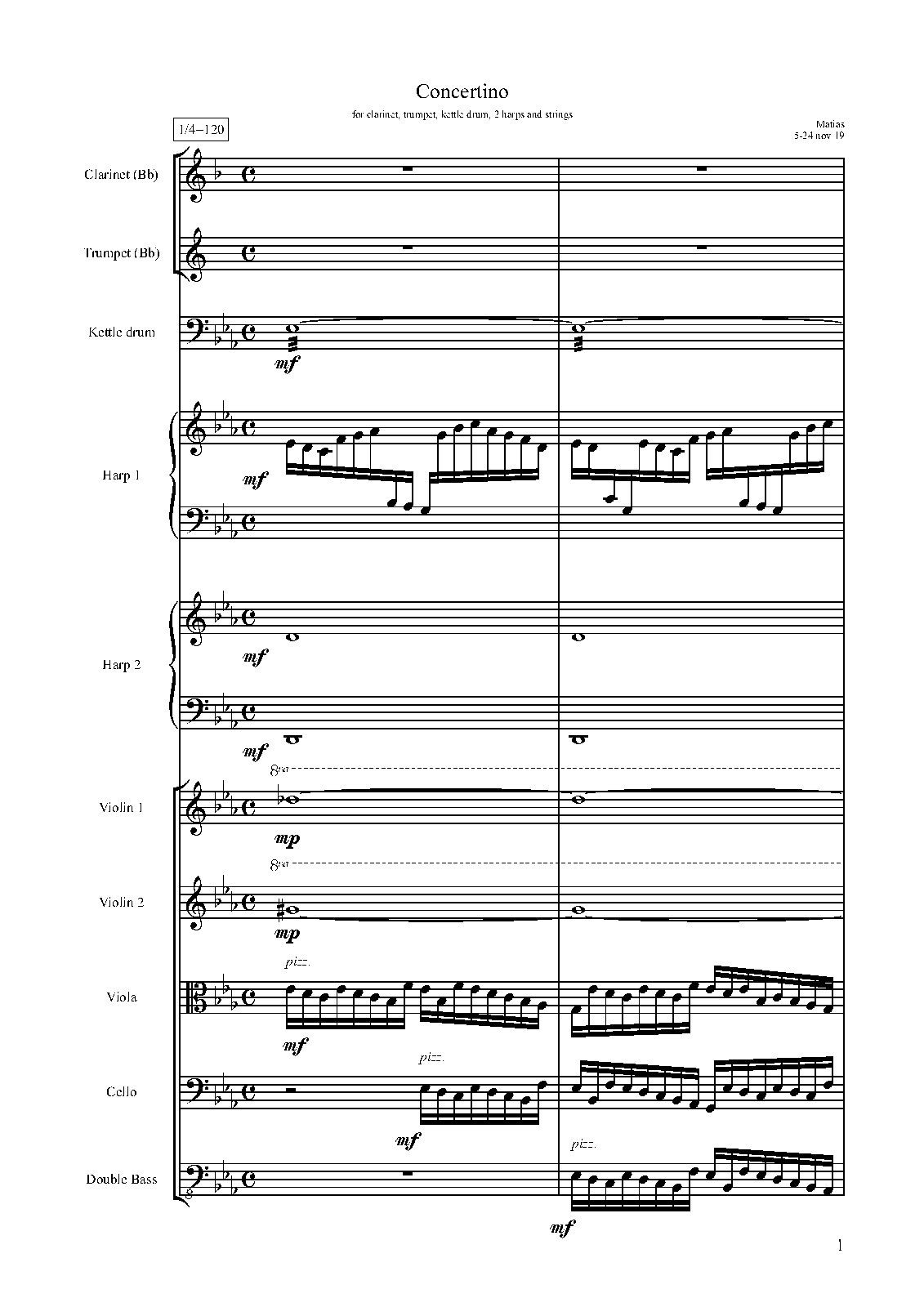 | Instrumentation | clarinet, trumpet, kettle drum, 2 harps, strings |