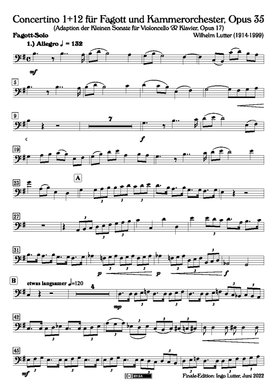 | Alternative. Title | "Concertino 1+12" für Solo-Fagott + Kammerorchester "Concertino 1&12" for bassoon + chamber orchestra |