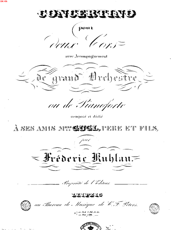 | Genre Categories | Concertinos; Concertos; For 2 horns, orchestra; |