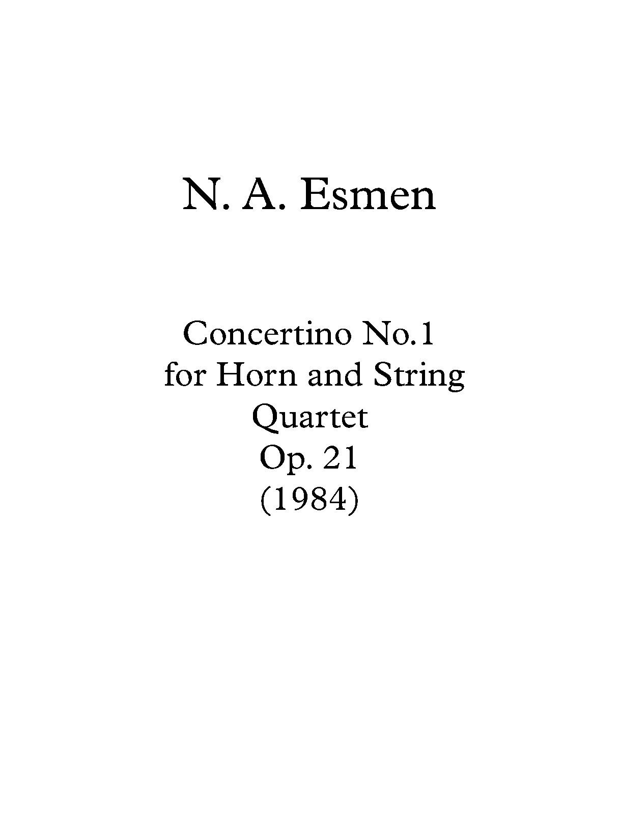 | Work Title | Concertino No. 1 for Horn and String Quartet |