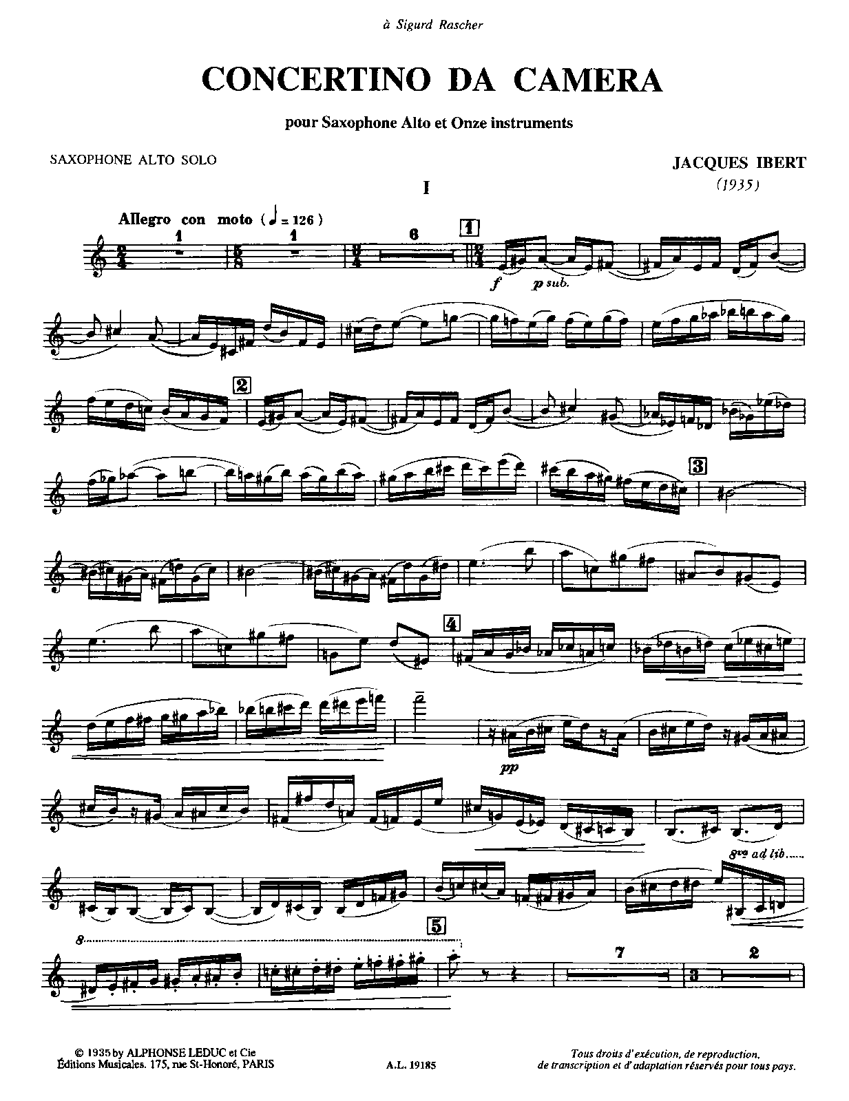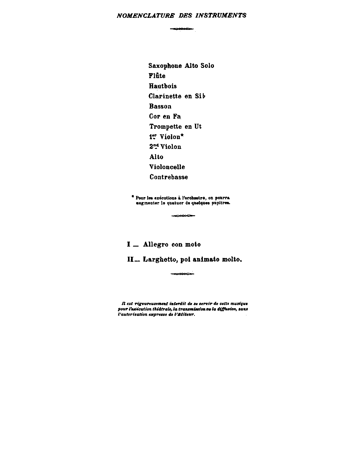 | Instrumentation | Solo: alto saxophone (E♭) 11 instruments: flute, oboe, clarinet, bassoon, horn, trumpet, 2 violins, viola, cello, bass |