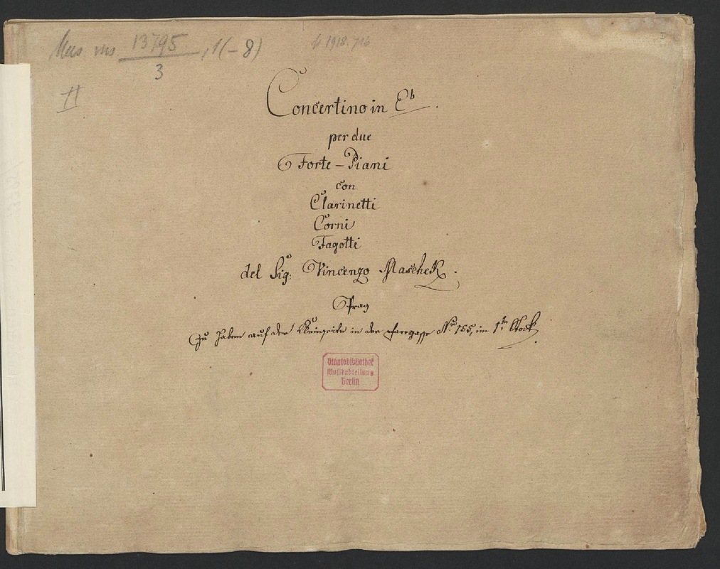 | Alternative. Title | Concertino in Eb per due Forte-Piani con Clarinetti Corni Fagotti |