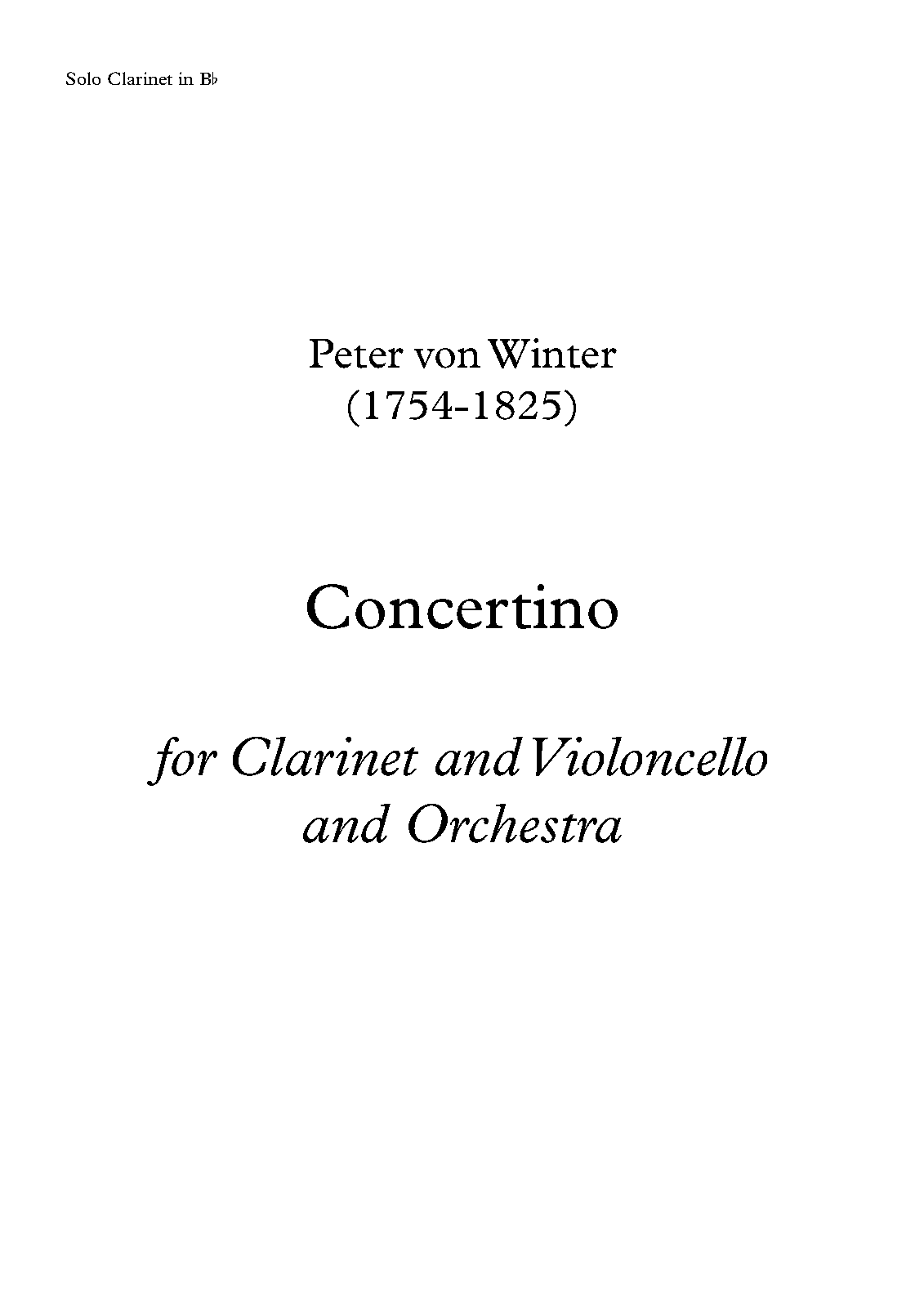 Concertino per il Clarinetto e Violoncello composta per [da] Sig Pietro Winter per Sigr Baermanne Legrand