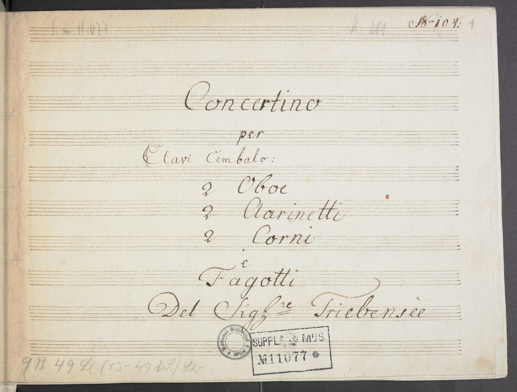 | Alternative. Title | Concertino per Clavi Cembalo: 2 Oboe 2 Clarinetti 2 Corni e Fagotti |