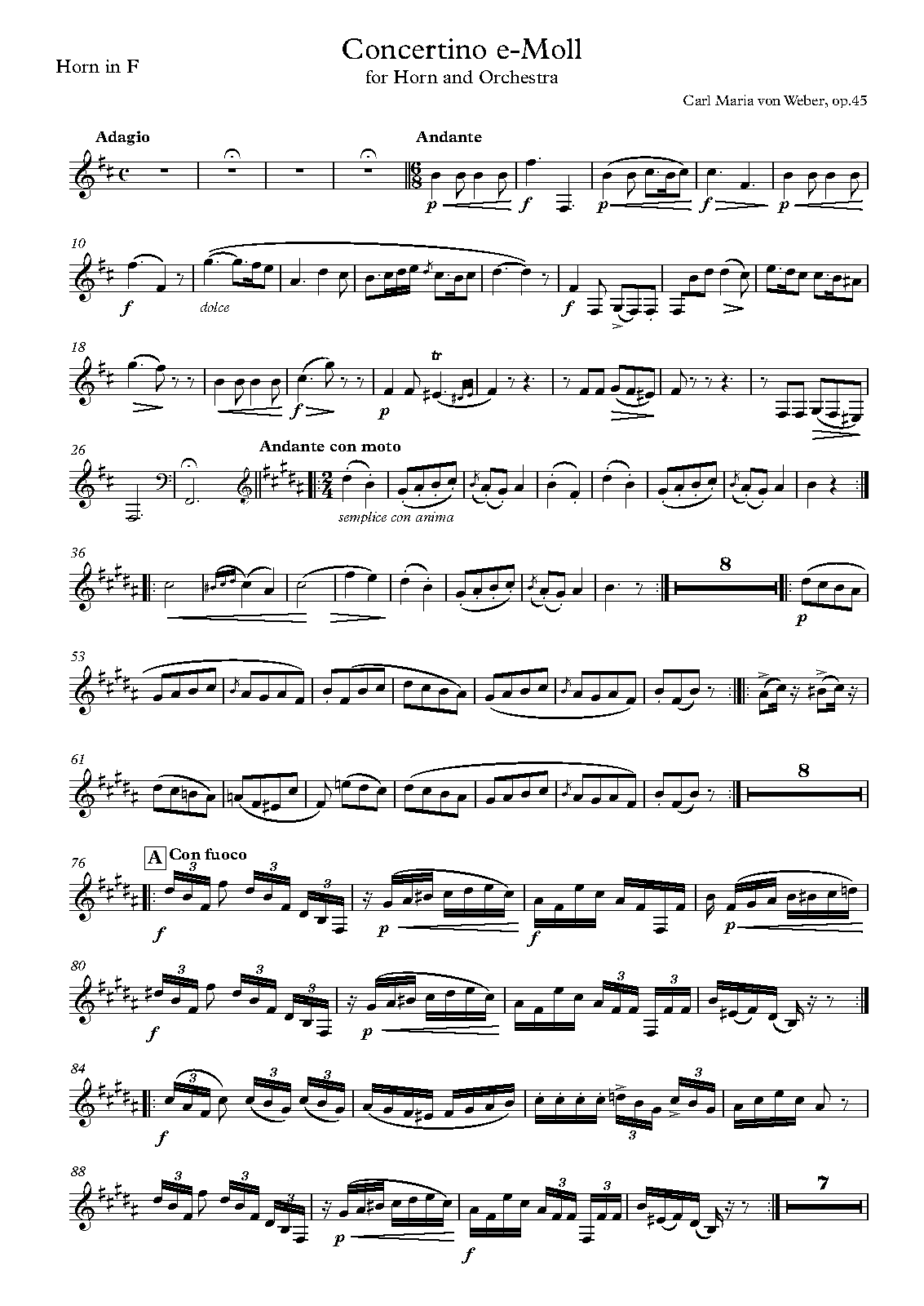| Name Translations | Concertino for Horn and Orchestra; ホルン小協奏曲 (ウェーバー); Concertino pour cor et orchestre |