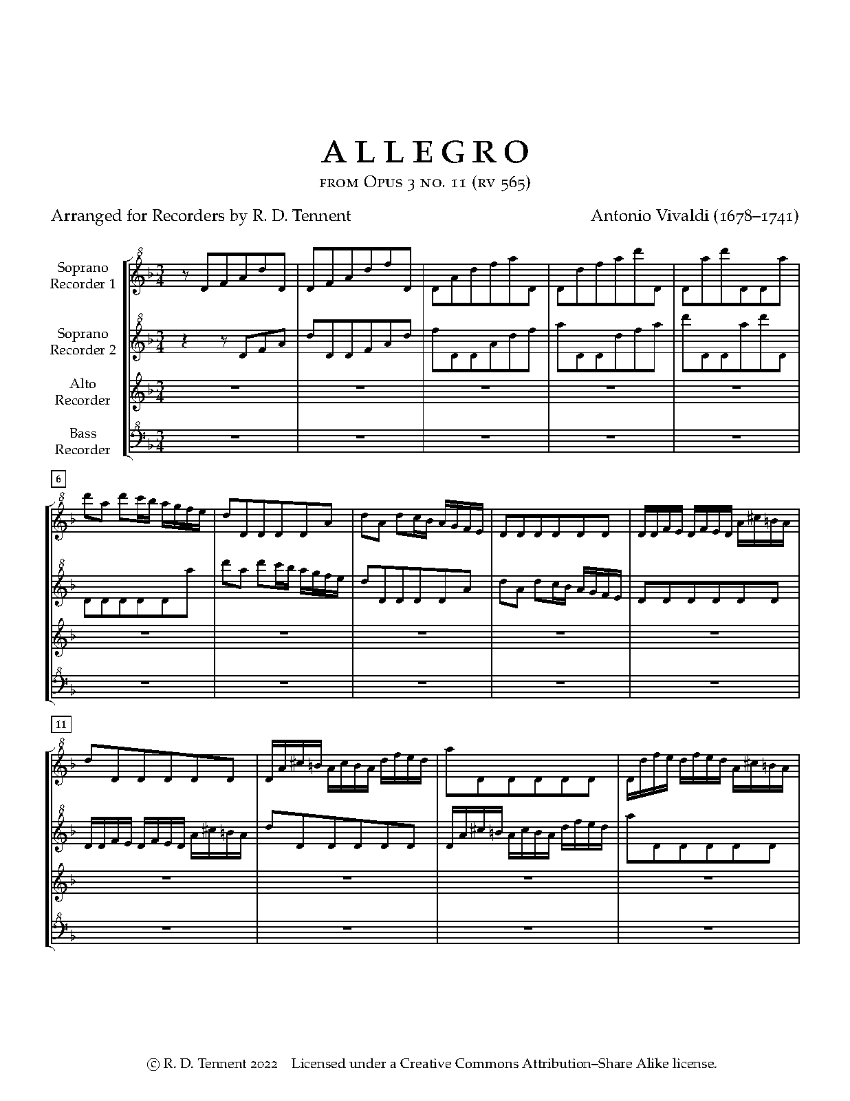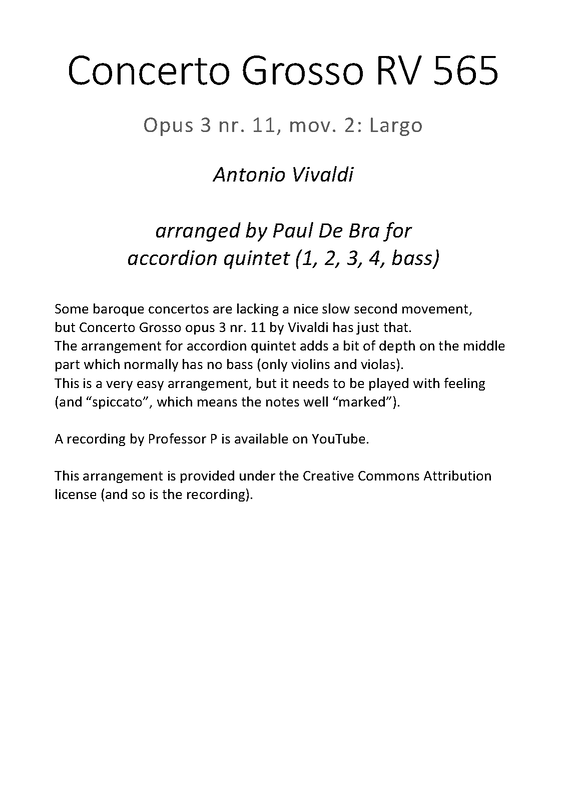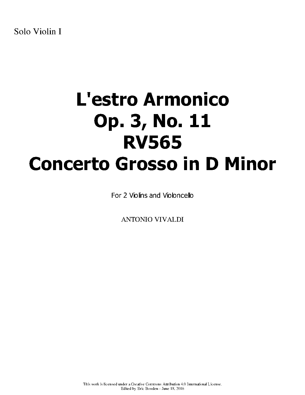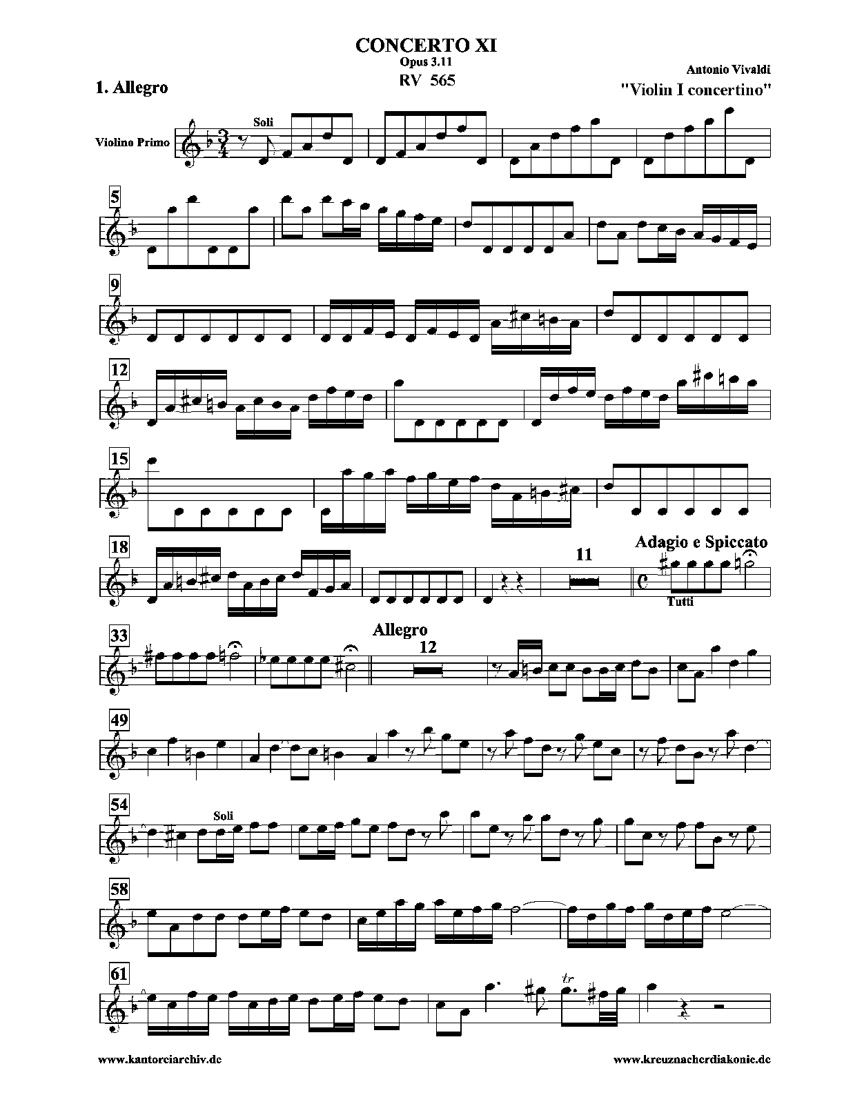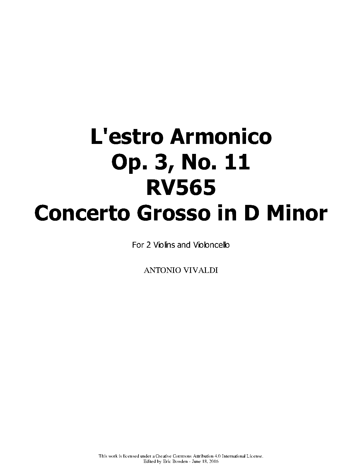 | Opus/Catalogue NumberOp./Cat. No. | RV 565 ; Op.3 No.11 |