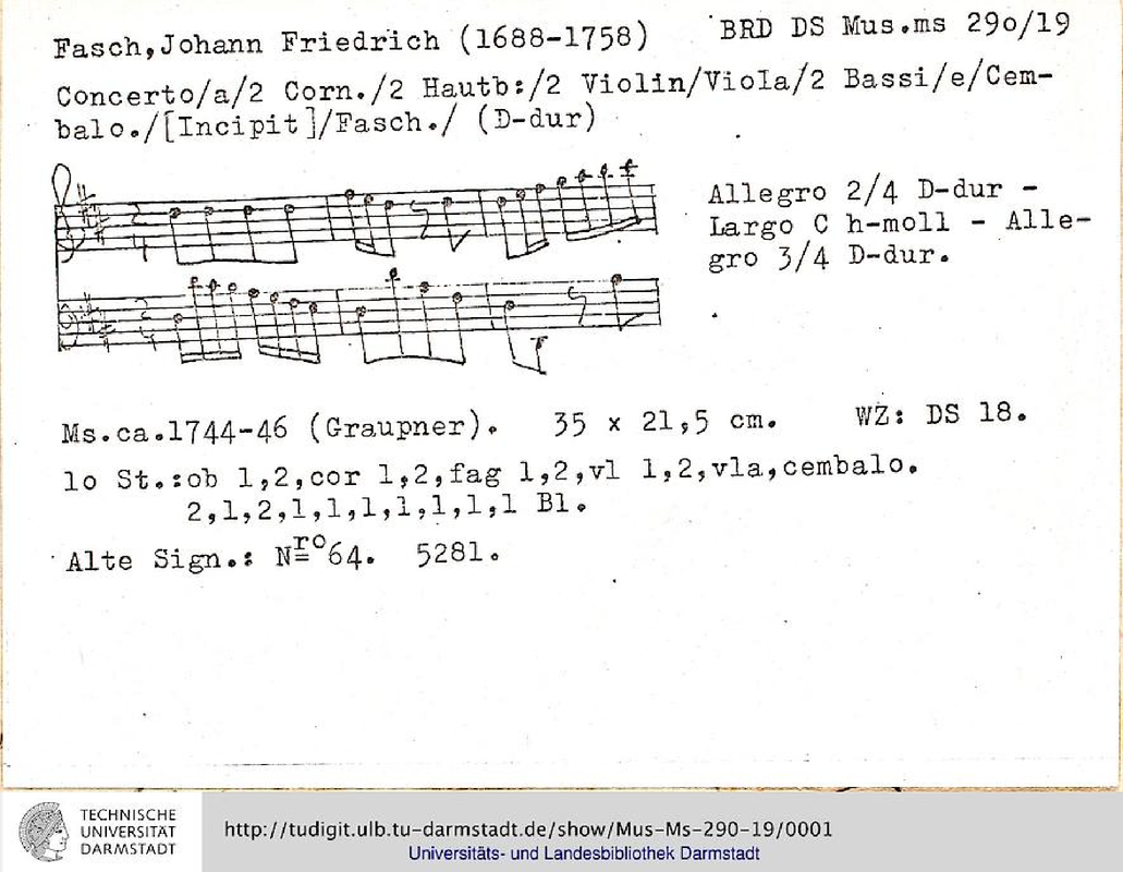 | Instrumentation | Solo: 2 oboes, 2 horns, 2 bassoons Orchestra: strings, continuo |