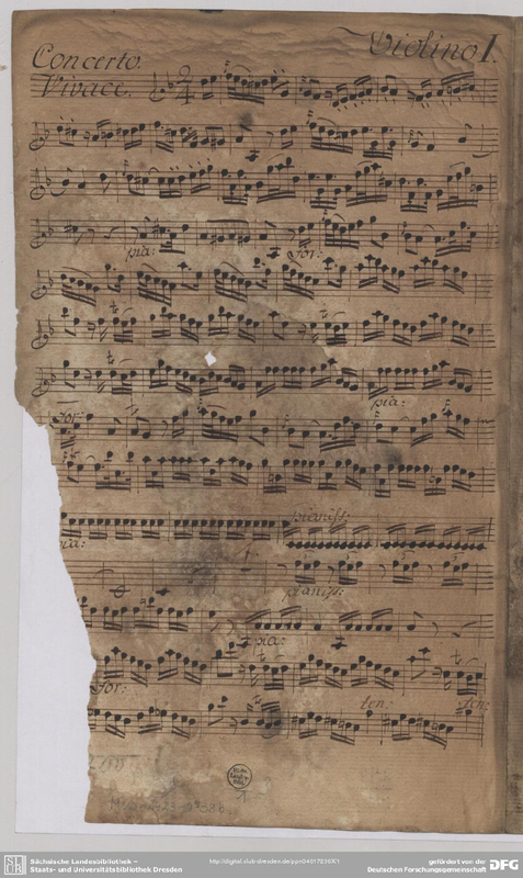 Schrank II coll. Scan of Mus.2423-O-38a, SLUB Dresden. RISM 212002869. Contains only the first (Vivace) and third movement. Many changes by Pisendel.