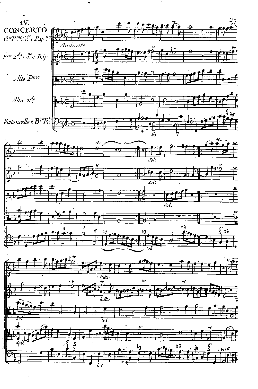Concerto quarto in Re minore con due violini, viola e violoncello di concertini obligati, e due altri violini e basso di concerto grosso