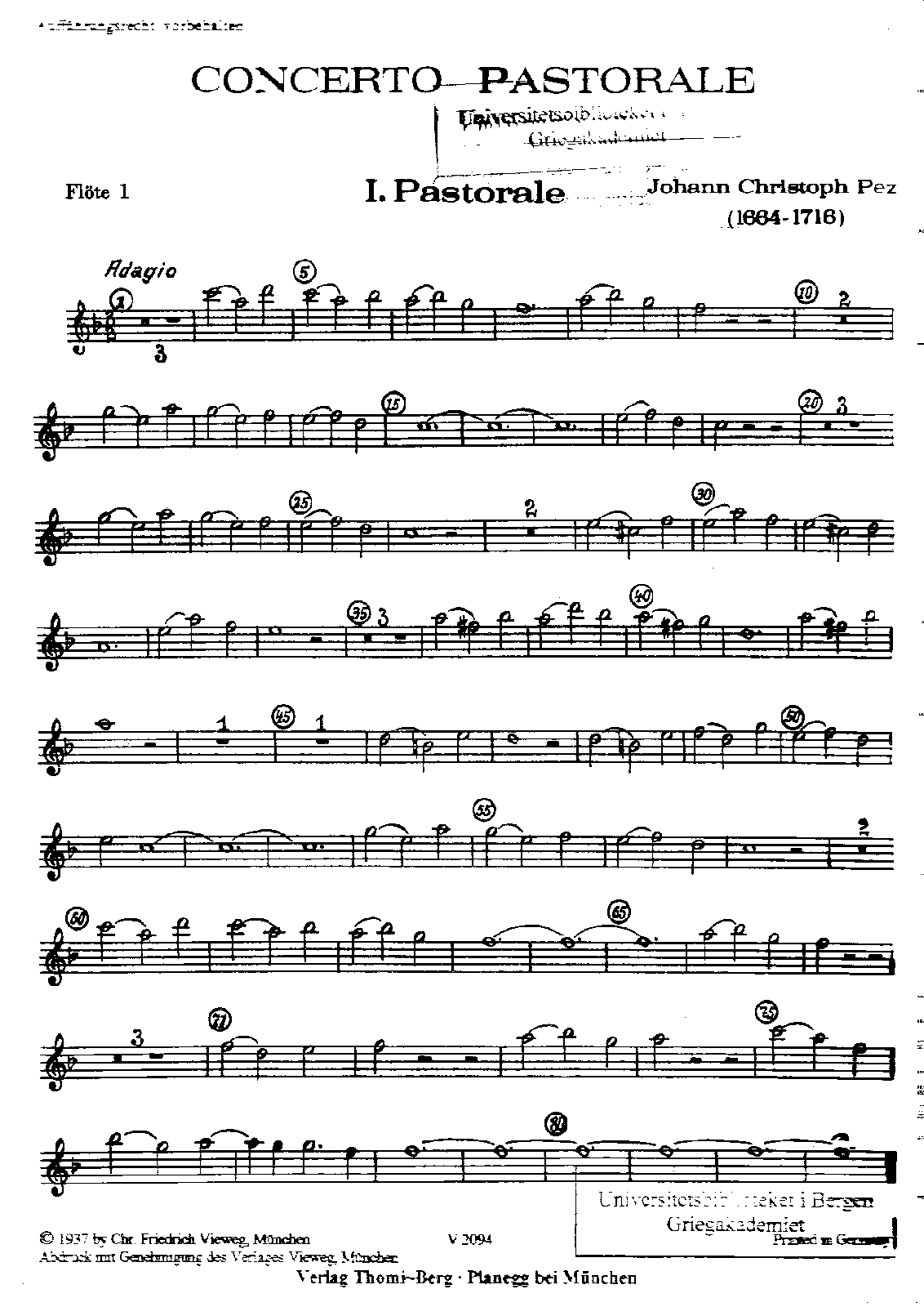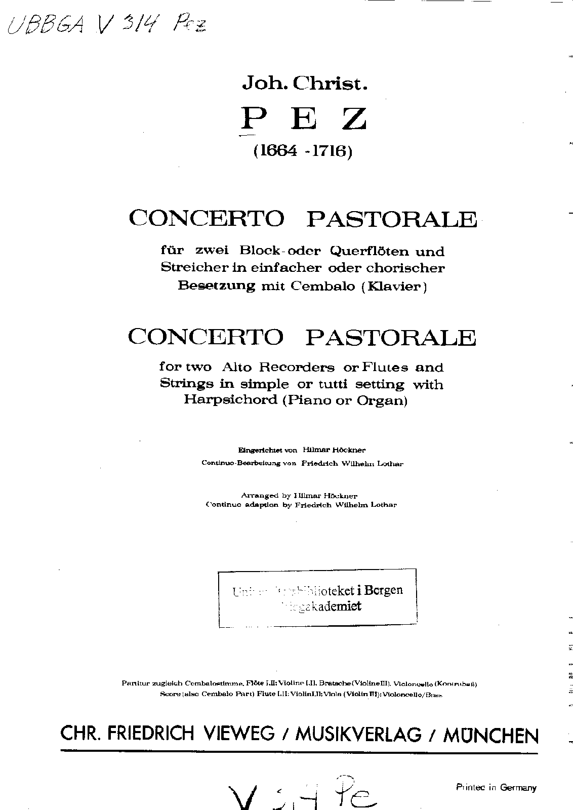 Concerto Pastorale for two recorders/flutes, strings and BC