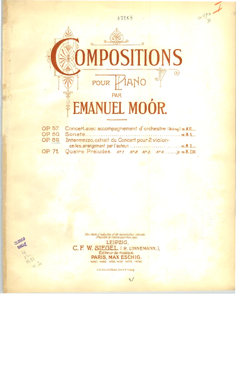 This file is part of the Sibley Mirroring Project. Complete 4-movement reduction has plate 47; full orchestral score has plate 14793 (same publisher though 40 and 47 may be "Siegel/Linnemann" while 14793 may be "Siegel" tout court.) Possibly published in 1908 with the full score, of course...