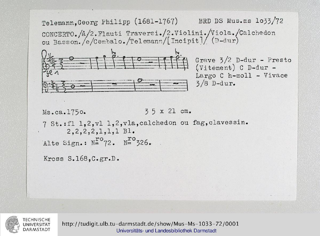 | Opus/Catalogue NumberOp./Cat. No. | TWV 53:D1 |