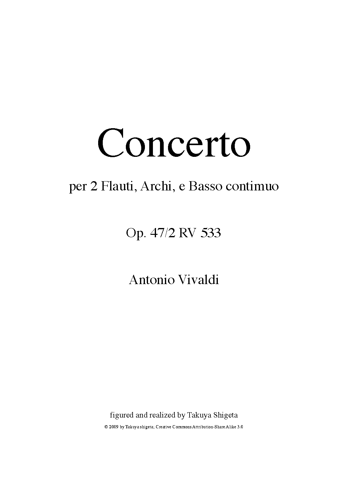 Alternative. Title Concerto per due flauti traversieri e archi in Do maggiore