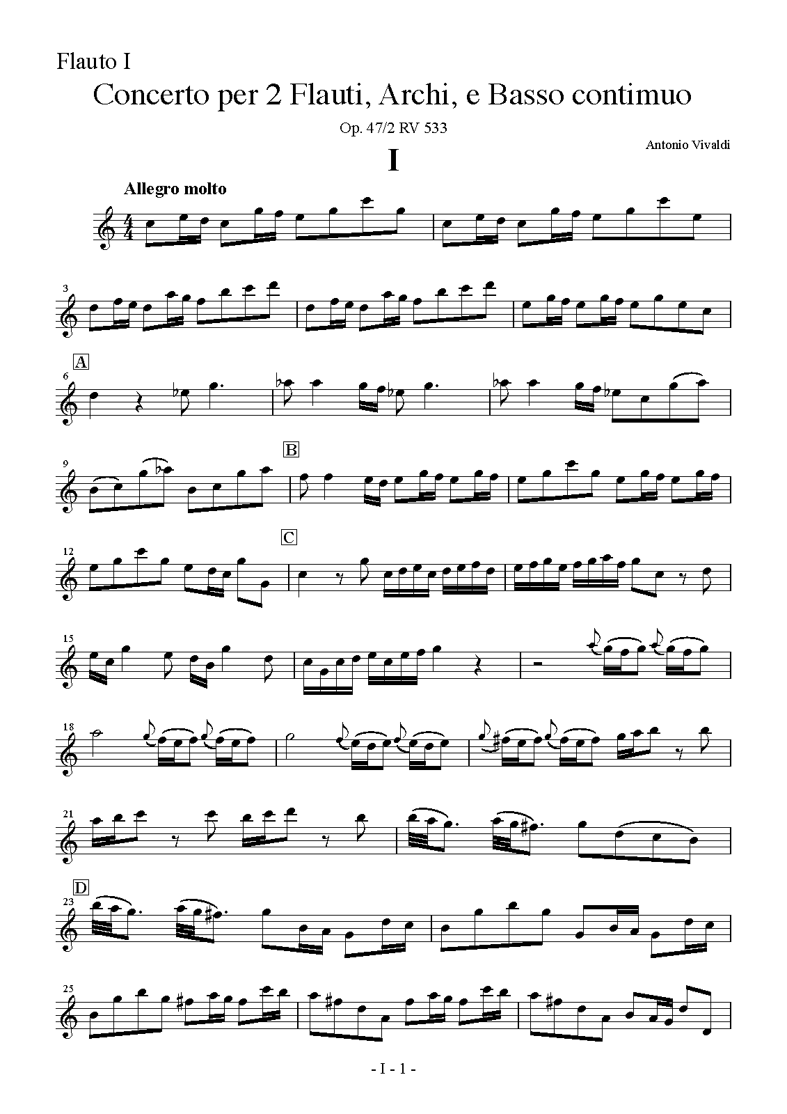 Name Translations Concerto for 2 flutes in C major (RV 533)