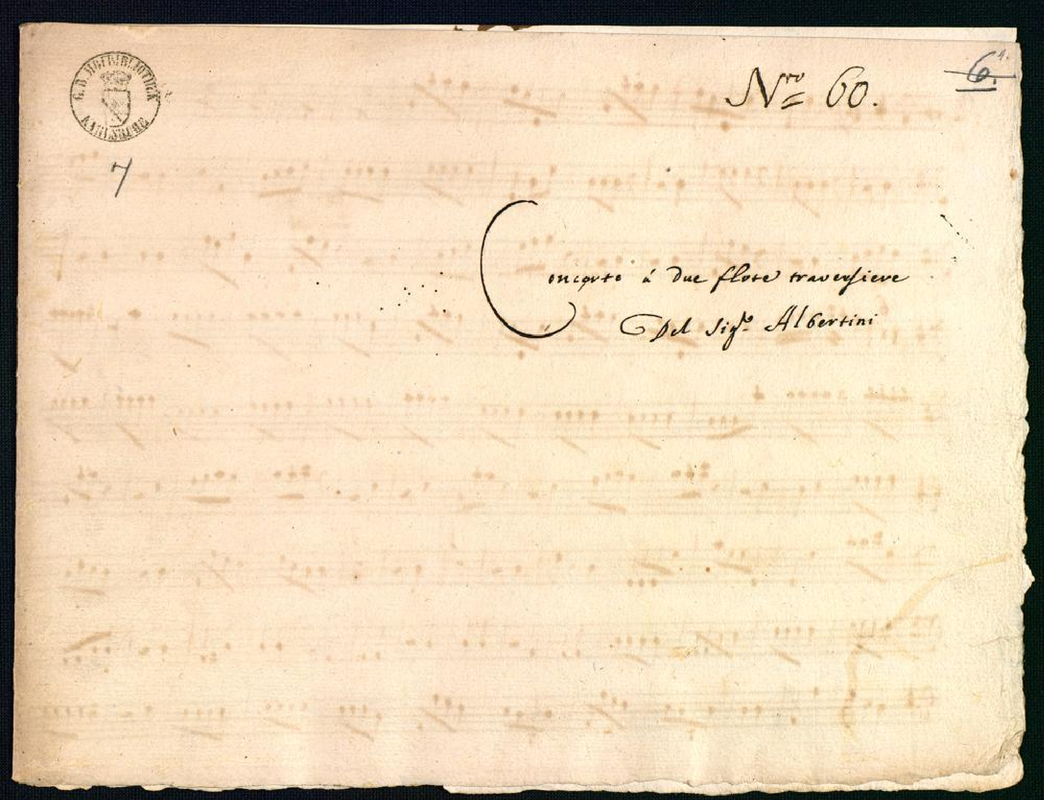 | Alternative. Title | Concerto á due flute traversiere del Sig. Albertini |