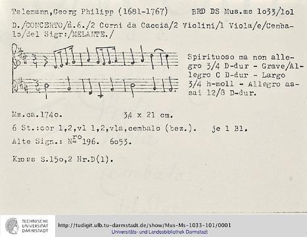 | Opus/Catalogue NumberOp./Cat. No. | TWV 52:D1 |