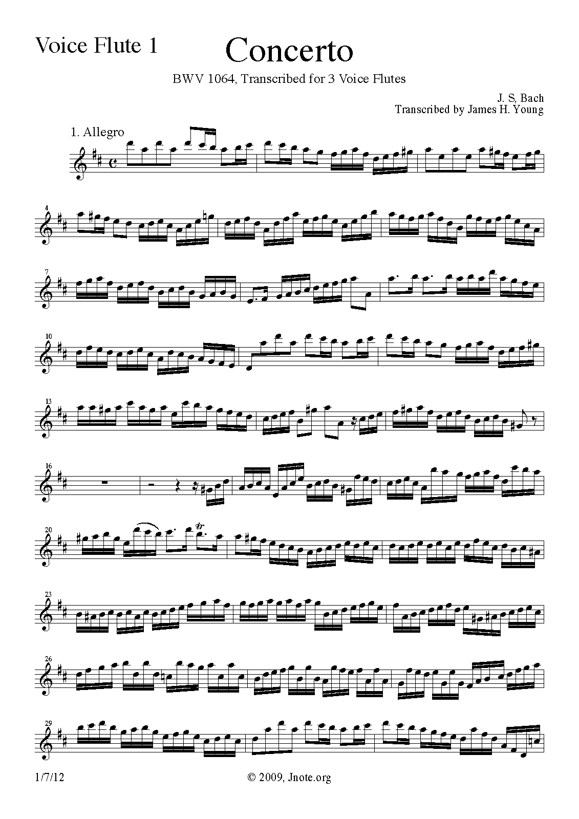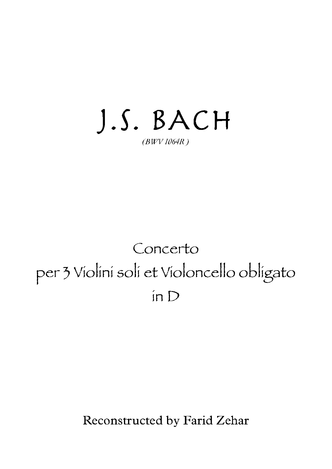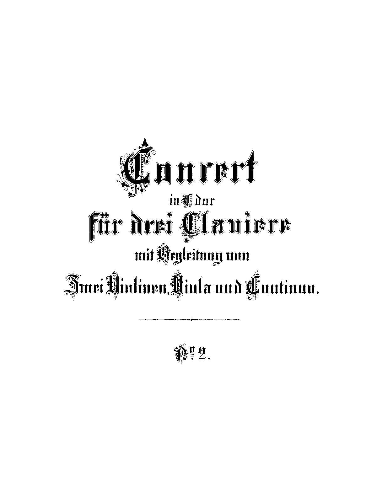 Extra Information Published in 1850 as part 14 of Peters' attempted complete edition under the editorship of Griepenkerl (and Czerny and Roitzsch for other volumes?) (see Monatsbericht (1850), p.71.) Generally (if conjecturally) regarded now as an arrangement of a lost Concerto for 3 Violins (BWV 1064R)