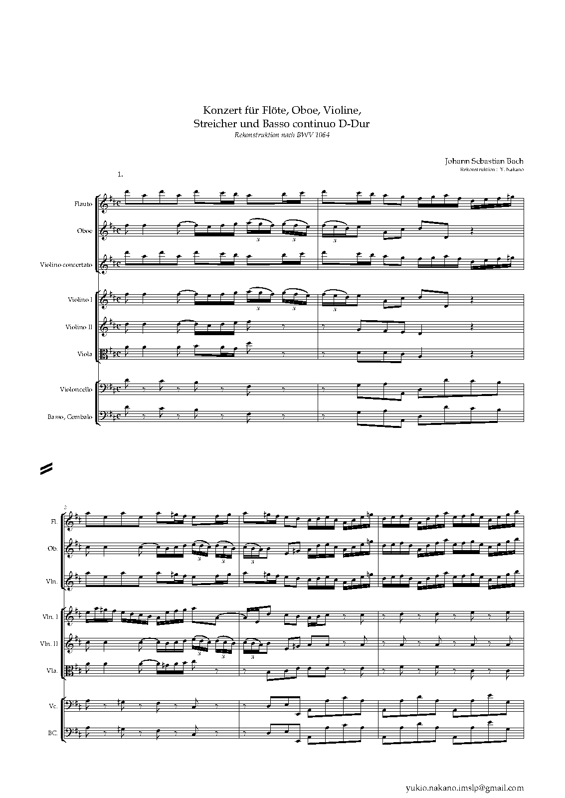 For Flute, Oboe, Violin, Strings and Continuo (Nakano)