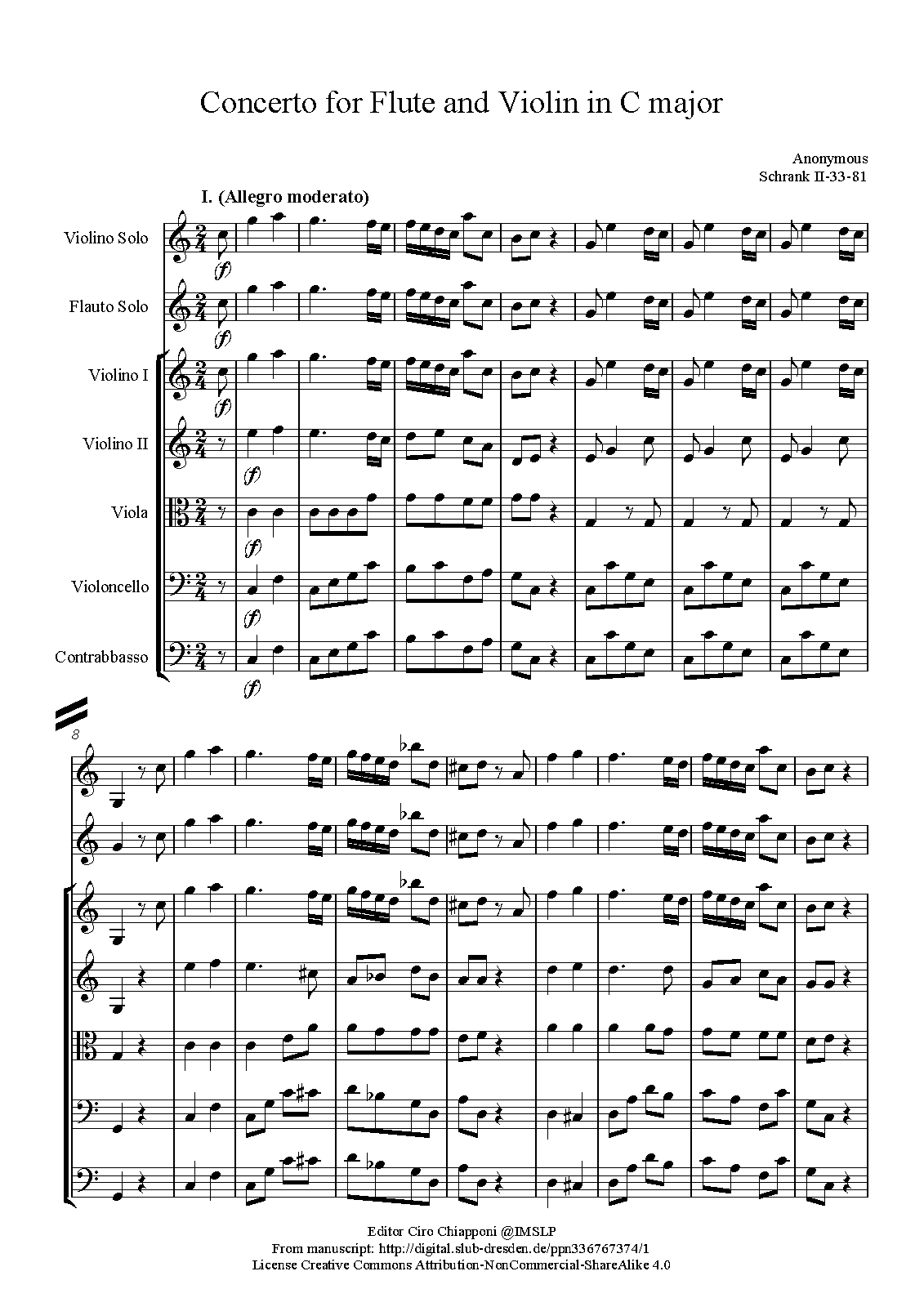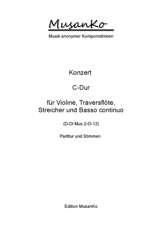 | Genre Categories | Concertos; For flute, violin, strings, continuo; Scores featuring the flute; |
