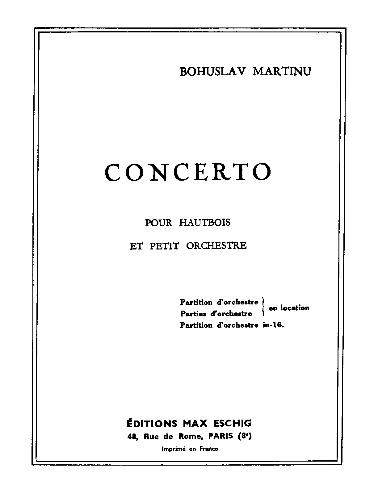 | Name Translations | Concerto for Oboe and Small Orchestra; Konzert für Oboe und kleines Orchester; Koncert pro hoboj a malý orchestr; Concierto para oboe; Koncert for obo og lille orkester; |