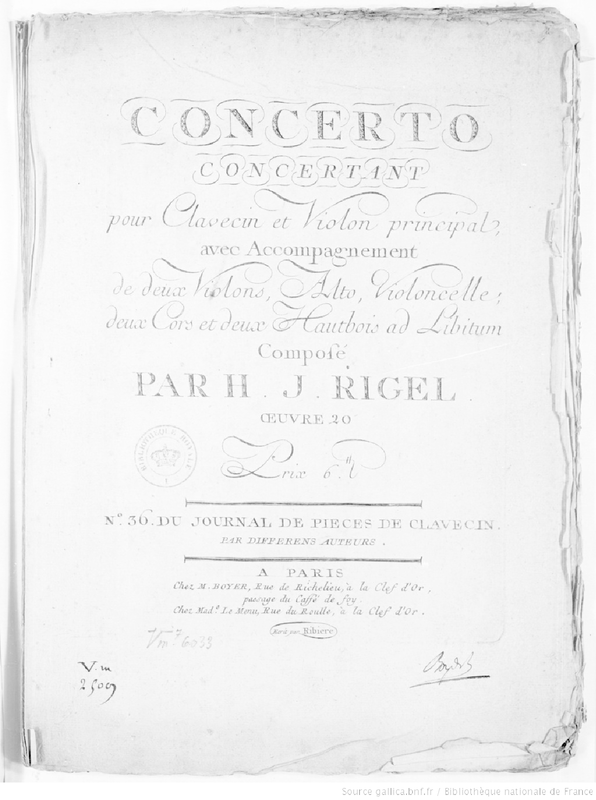 | Alternative. Title | Concerto concertant pour Clavecin et Violon principal avec accompagnement de deux violons, alto, violoncelle, deux cors et deux hautbois ad libitum |