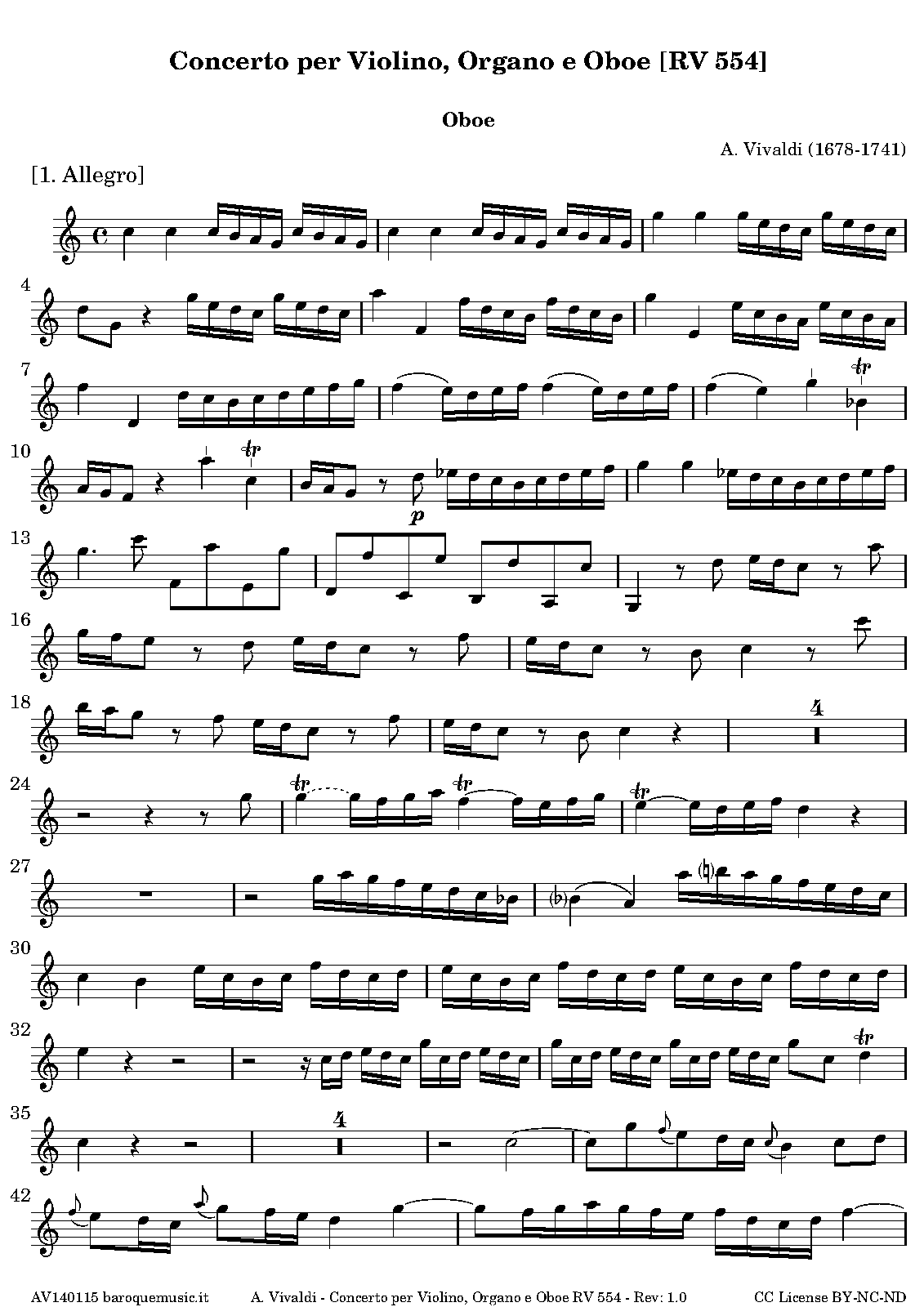 Name Translations Concerto for oboe, violin, and organ (or violin) in C major (RV 554)