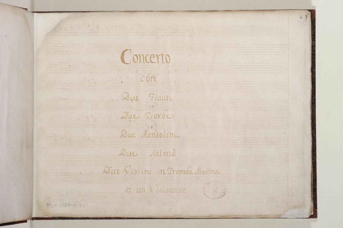 Concerto con due flauti, due tiorbe, due mandolini, due salmo, due violini in tromba marina et un violoncello