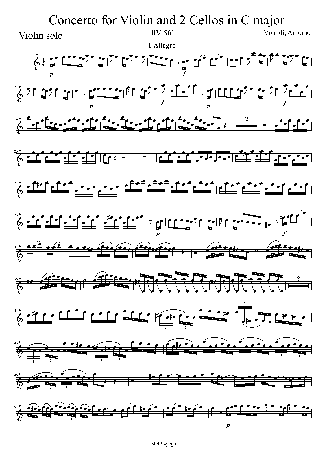 | Work Title | Concerto for Violin and 2 Cellos in C major, RV 561 |