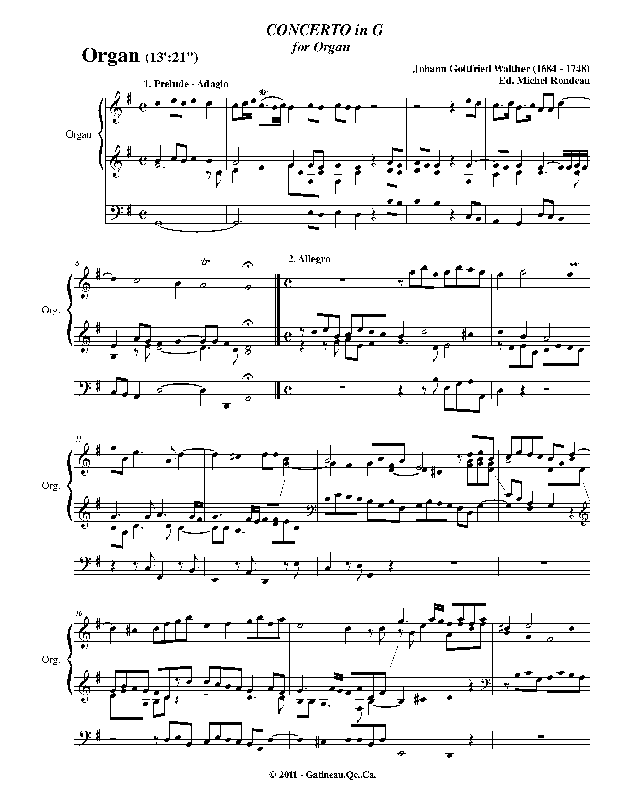 | Alternative. Title | Concerto in G Major |