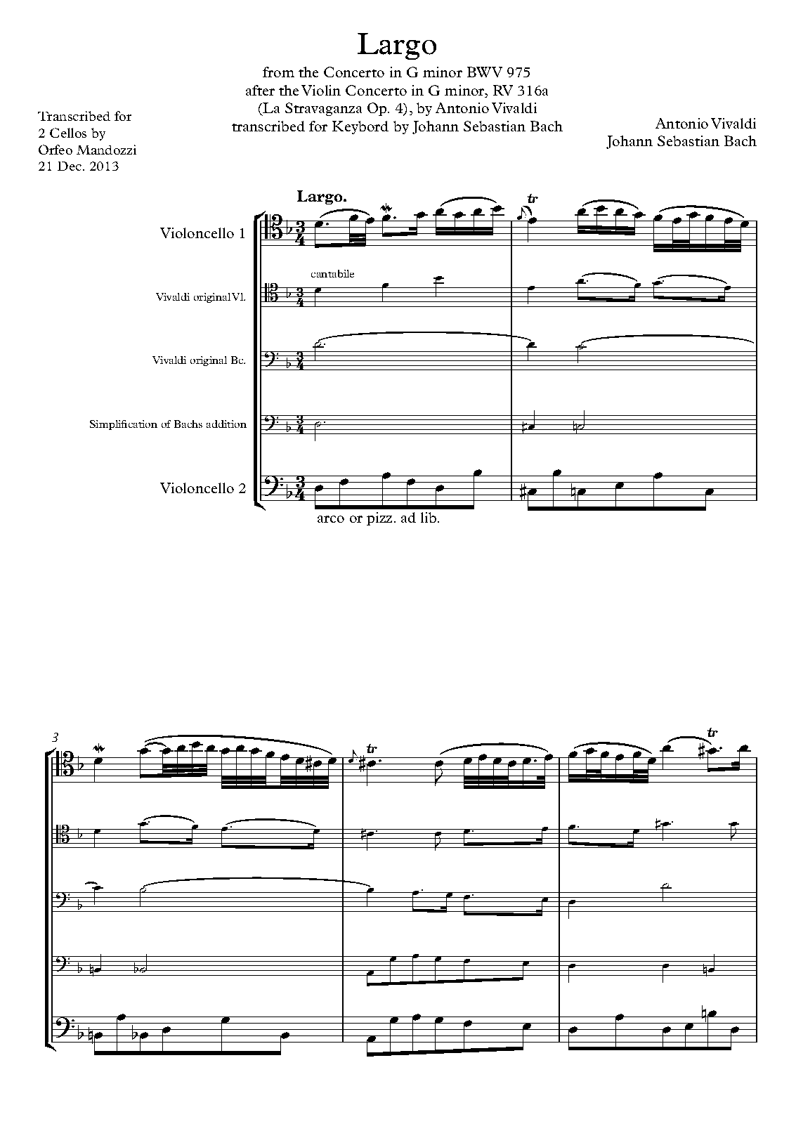 Misc. Notes This score includes Vivaldi Original version as well. The Violin and Continuo Parts are not meant to be played with this setting; they are for study purposes to compare against the Cello parts.