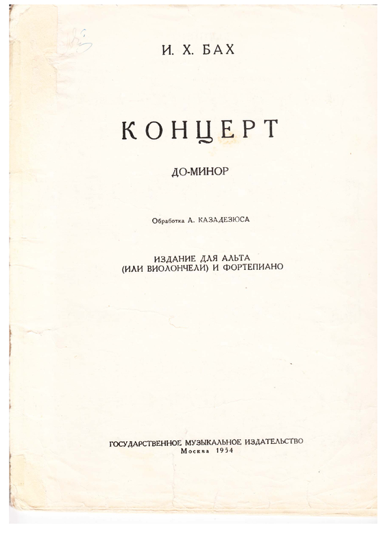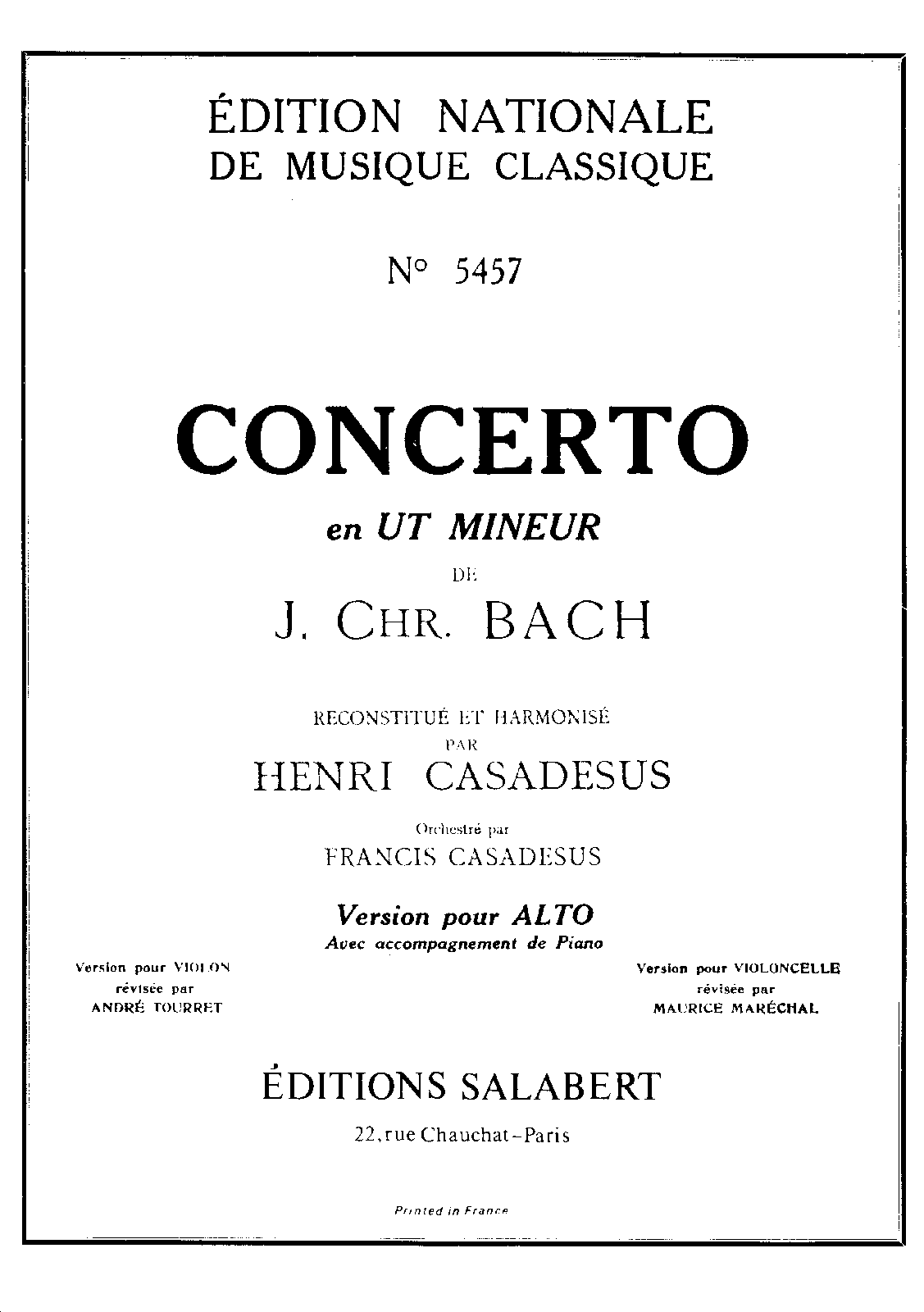 Alternative. Title Concerto en ut mineur pour alto et orchestre. Pastiche de J. Ch. Bach