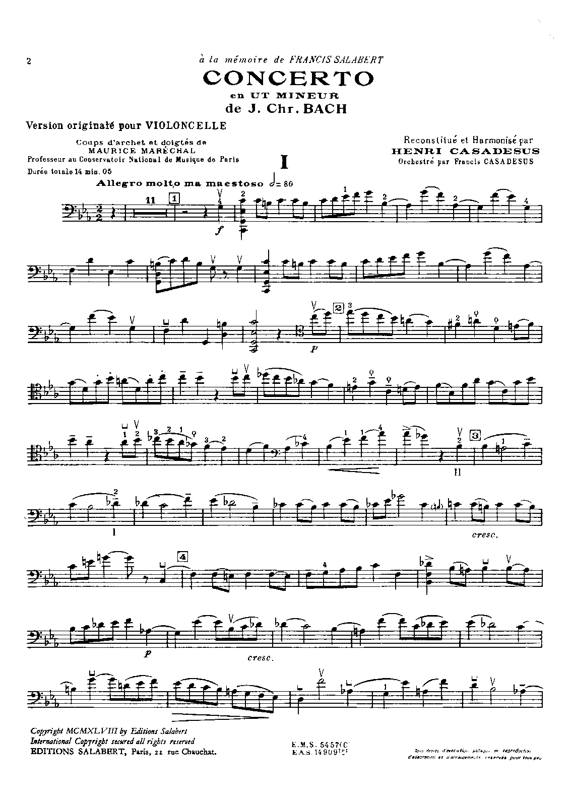 Initially published as a composition by J.C. Bach. Now recognized as having been composed by Casadesus himself.