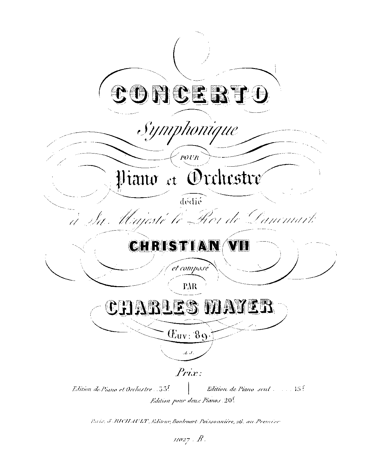 Premiered probably no later than 1853 (if that late) - (based on a somewhat snarky (especially when the ellipses are filled out) 5 November 1853 letter by von Bülow to Liszt suggesting a performance was planned)- "Charles Mayer is roaming the streets, mad in love for a young Russian pianist... who is going to perform his Concerto symphonique in a charity concert" (Chopin: Pianist and Teacher: As Seen by His Pupils, p.168)