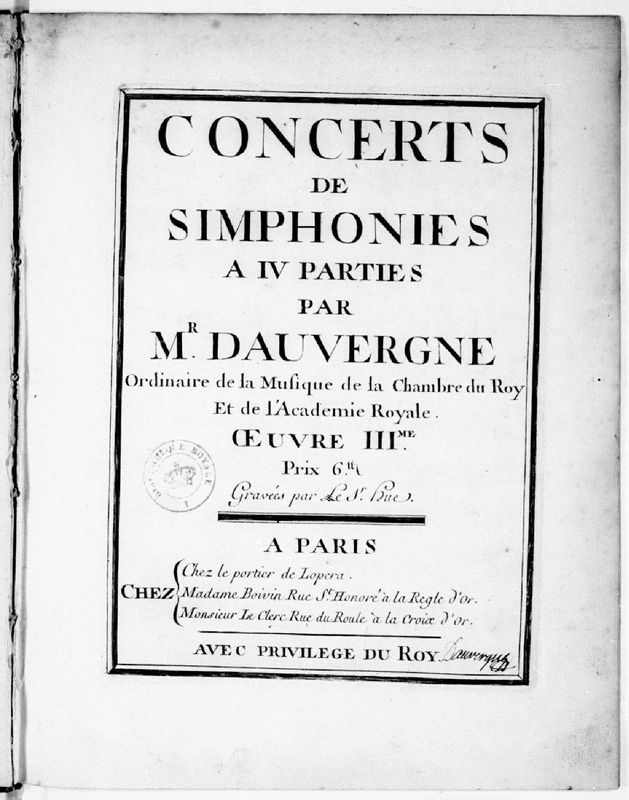 Grove Music says "Each of the Concerts de simphonies opp.3–4 consists of two suites for two violins, viola and bass. In their fast movements the violins play in unison or in 3rds or 6ths, while in slow movements the second violin provides accompaniment to the melodic first. Throughout, the viola and bass supply harmonic background and movement somewhat independently of each other. The suites are entirely typical of the mid-18th century."