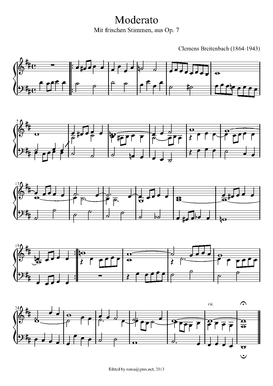 ⇒ 6 more: 19. Moderato in D major • 21. Moderato in A major (transposed to B♭ major) • 24. Trio in F major • 28. Moderato in F major • 40. Moderato in G minor • 43. Moderato in D minor