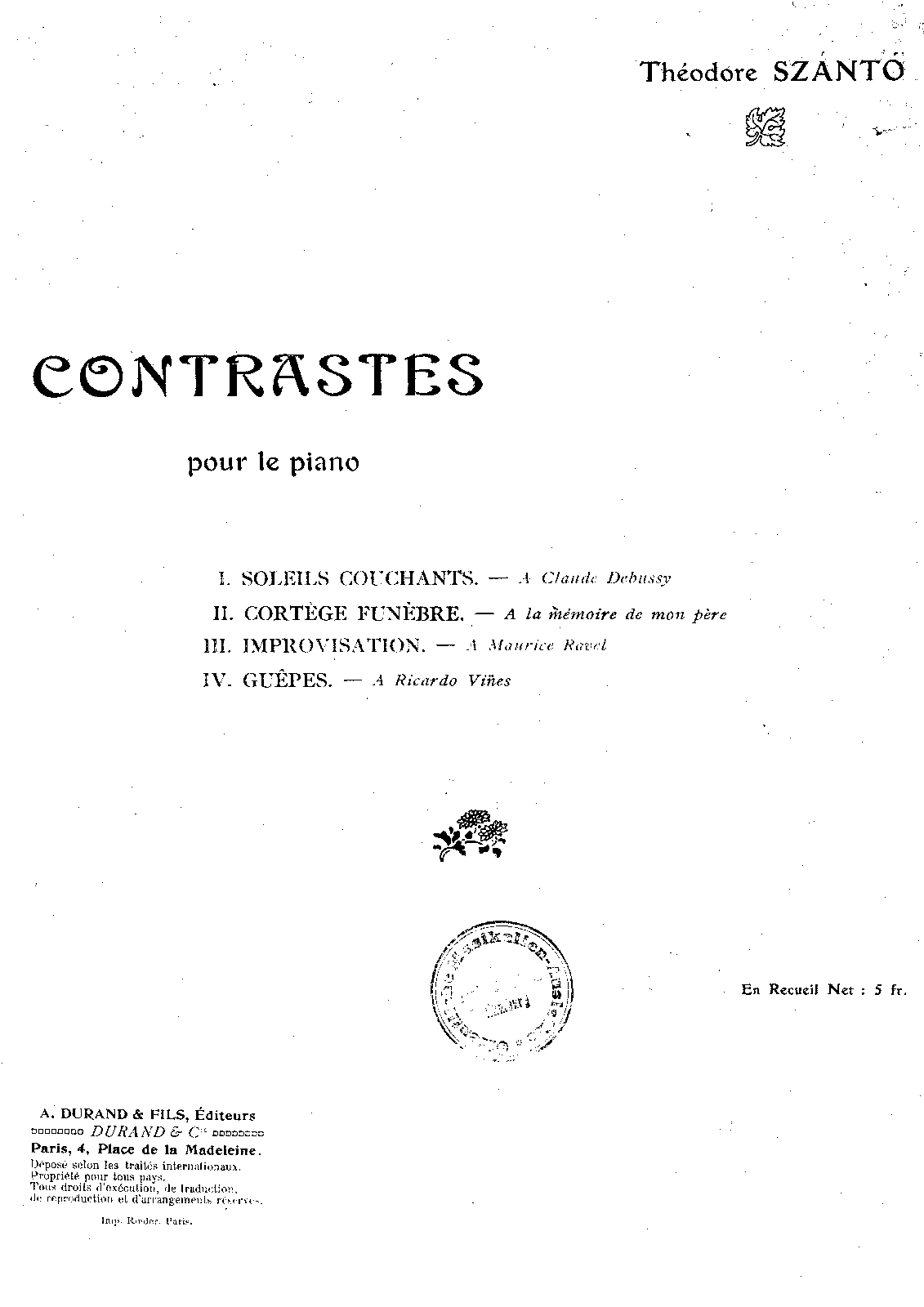 | Dedication | 1. To Claude Debussy 2. In memory of Szántó's father 3. To Maurice Ravel 4. To Ricardo Viñes |