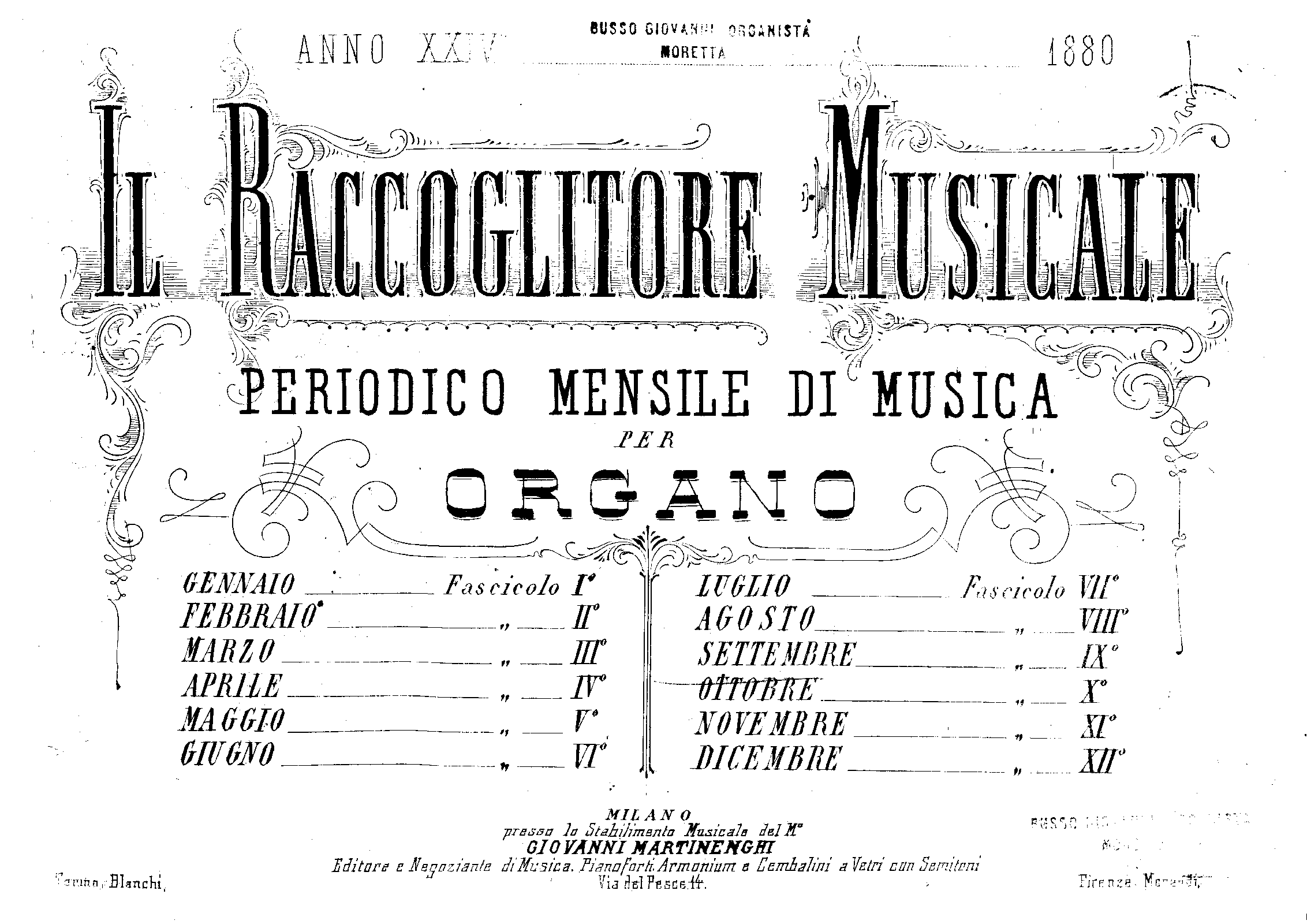 | Work Title | Contributions to the Raccoglitore Musicale |