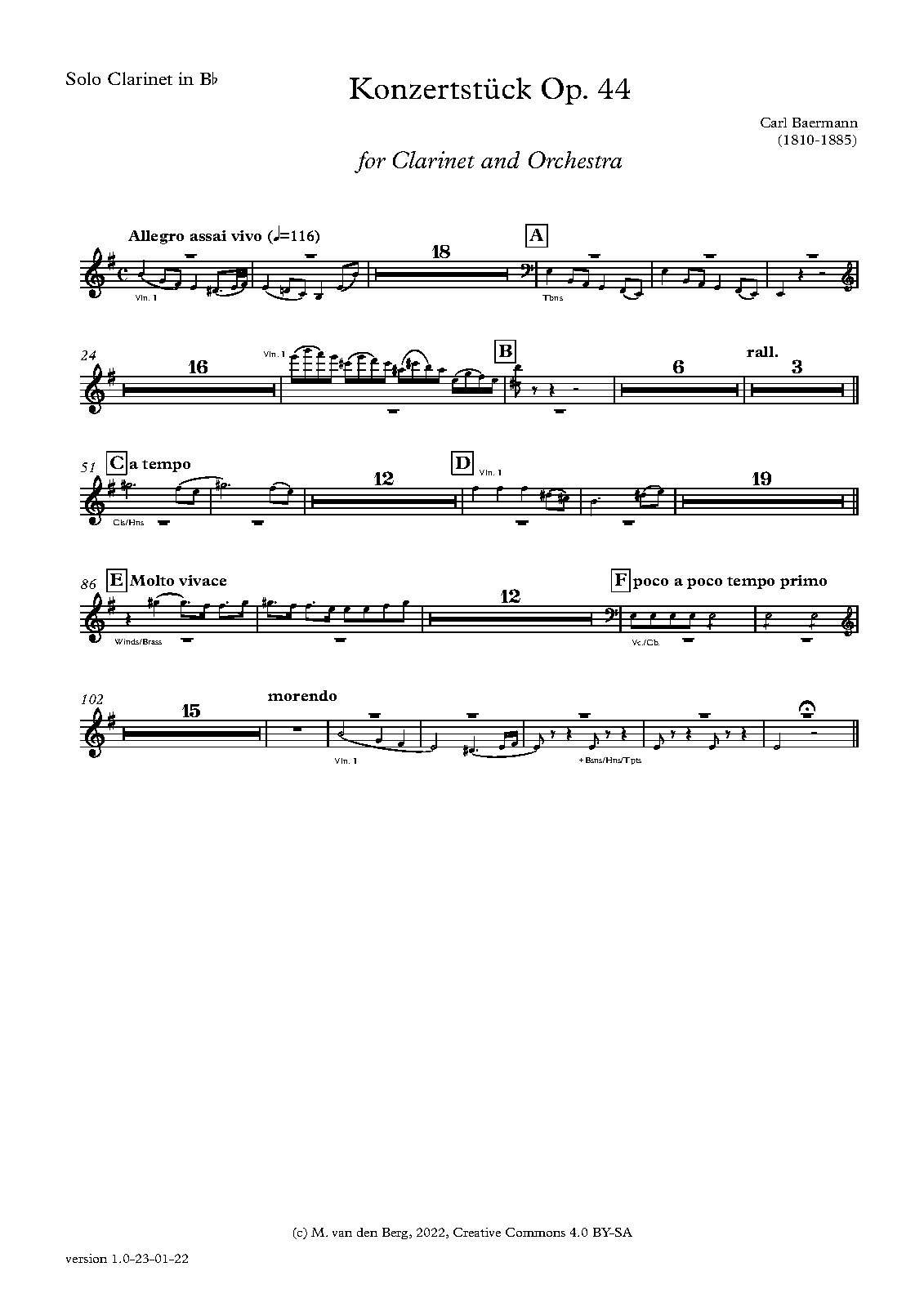 Based on a set of parts (André, 1880) in the Melbourne University Library (printed clarinet part, handwritten orchestral parts).