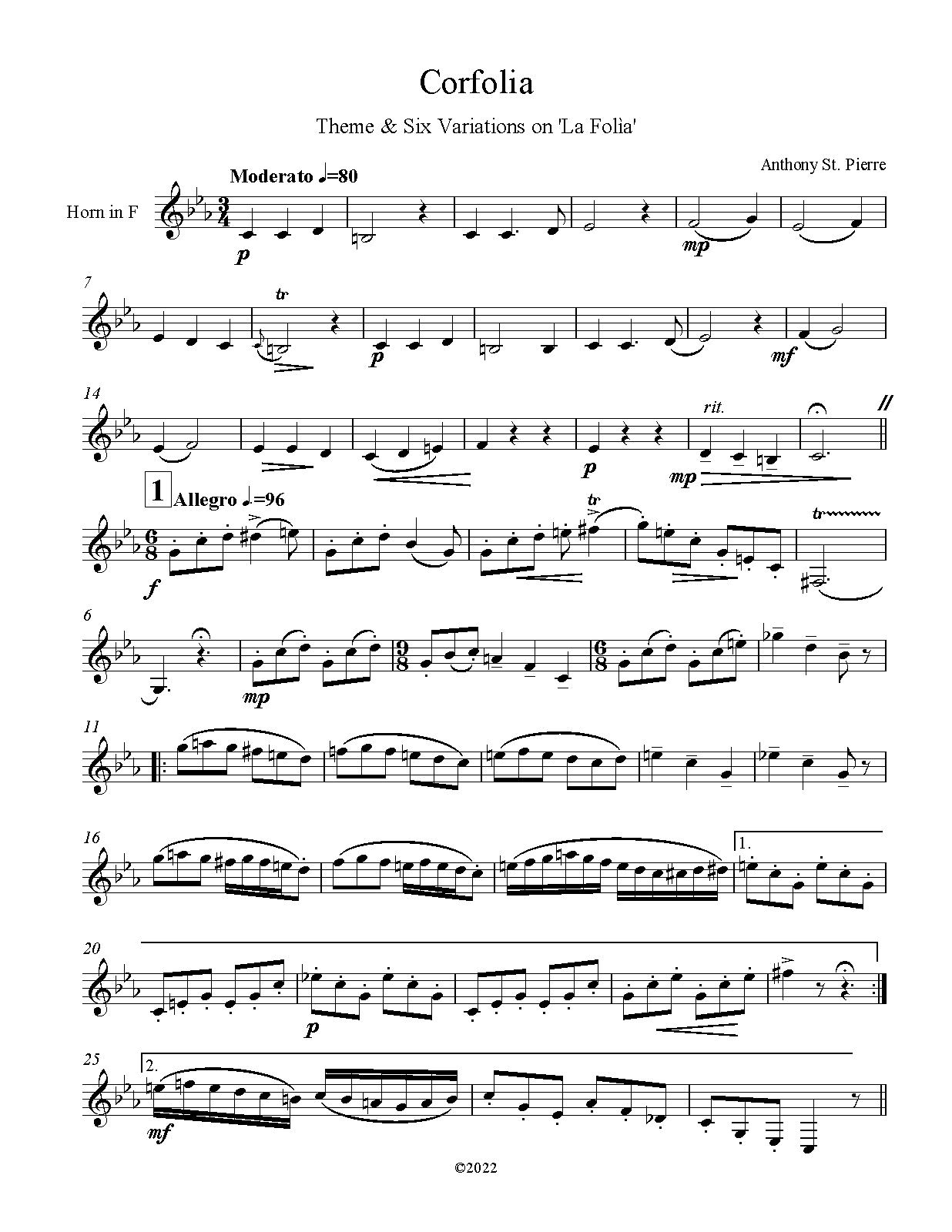 | Alternative. Title | Six Variations on 'La Folia' for unaccompanied horn |