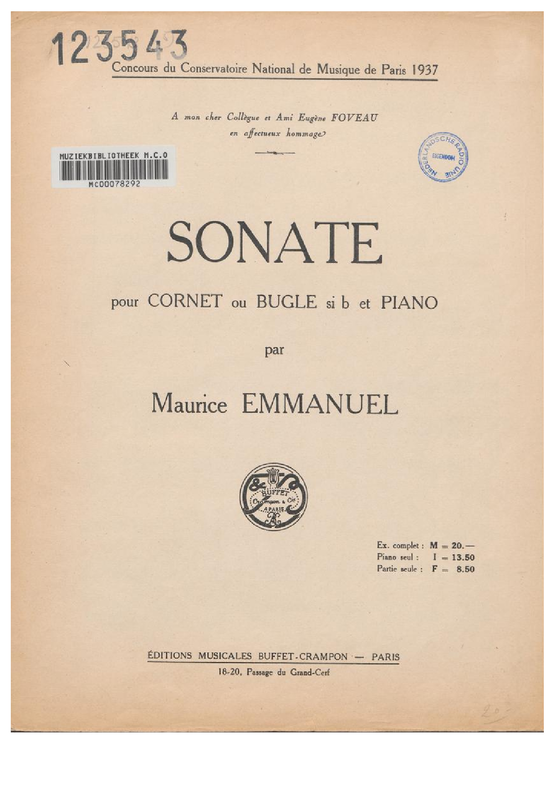 | Alternative. Title | Sonate pour cornet ou bugle en si♭ et piano |